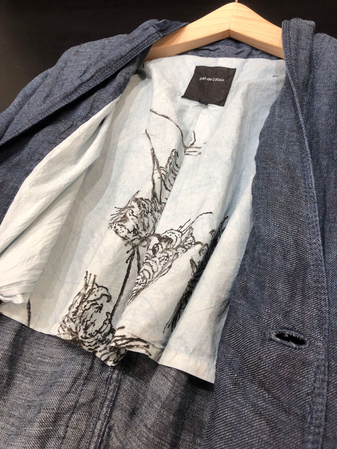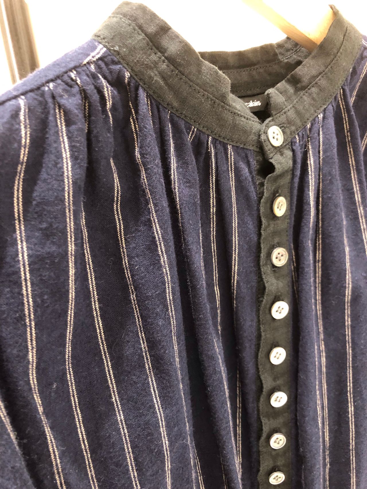 立ち上がり衿部分とセンターバックに濃色インディゴでアクセントライン入っております。