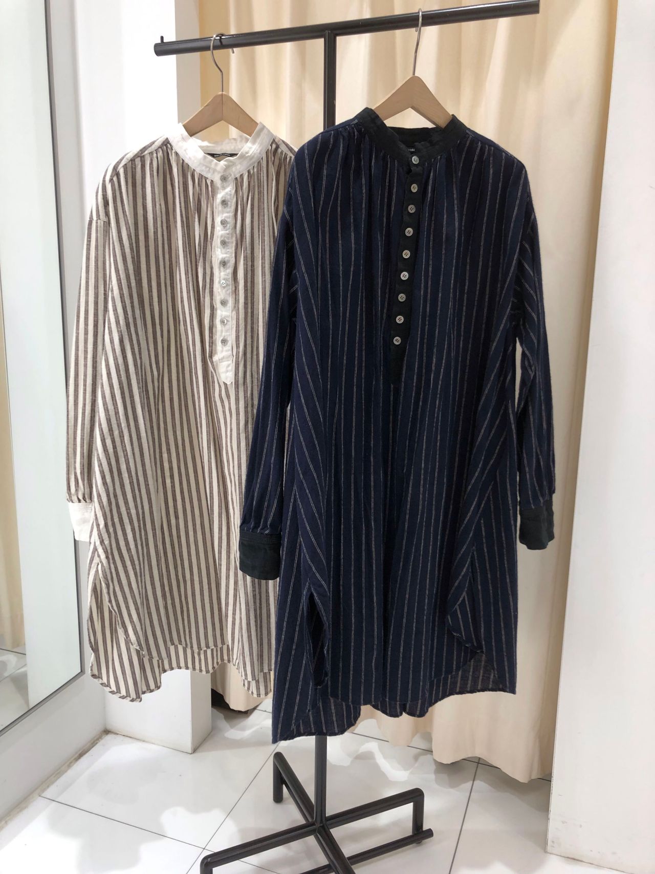 クラシックさを感じる綿麻ストライプです。