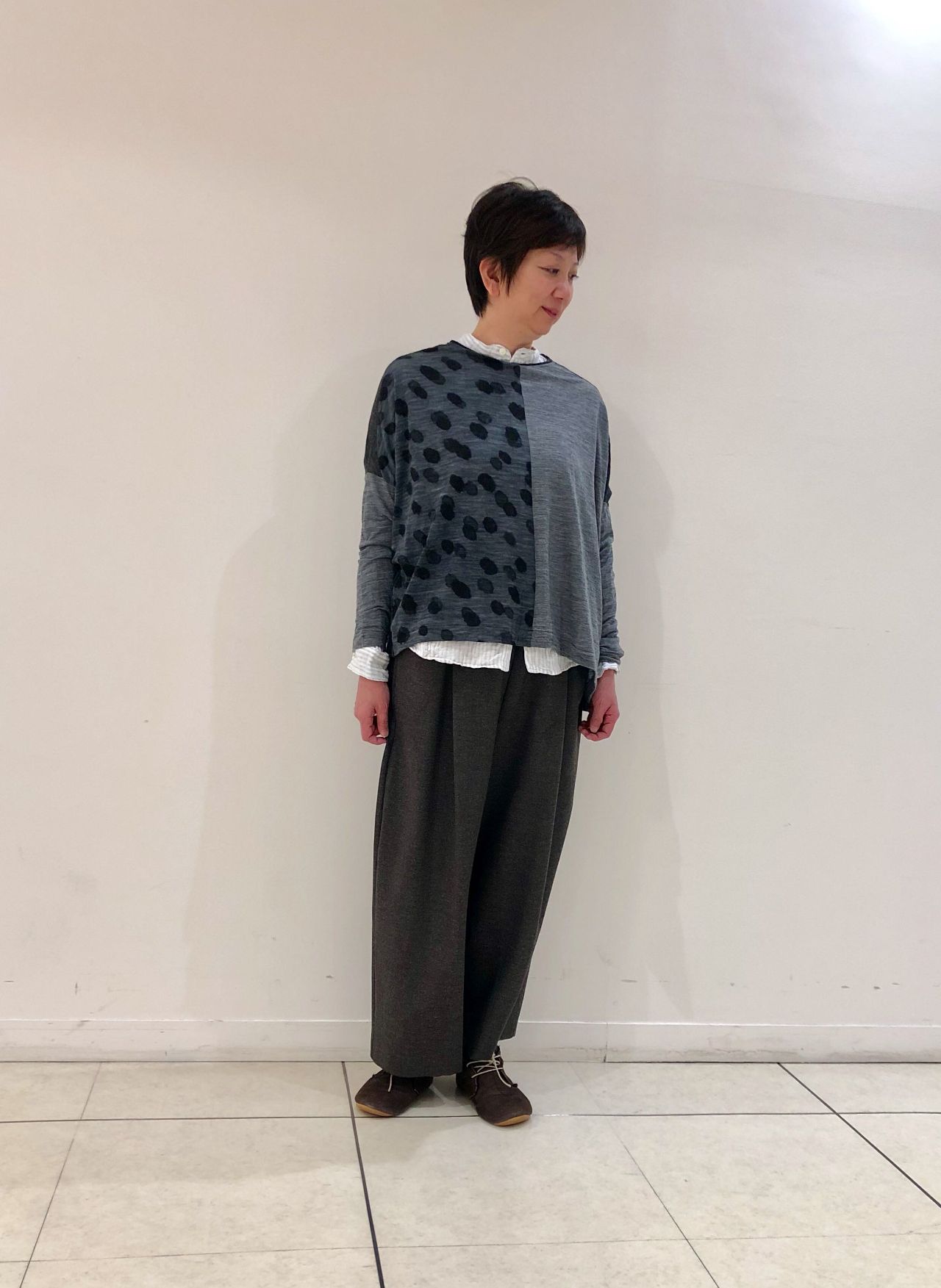 ゆったりとしたシルエットがワイドパンツやロングスカートとのコーディネートもオススメです。