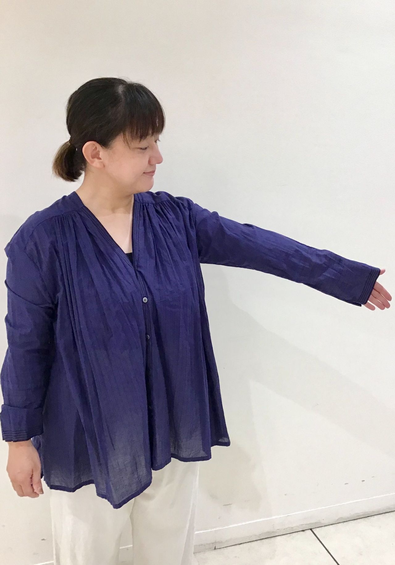 50年前の旧式シャトル織り機で織ることで、ふっくらと温かみのある風合いに仕上がったブラウスです。