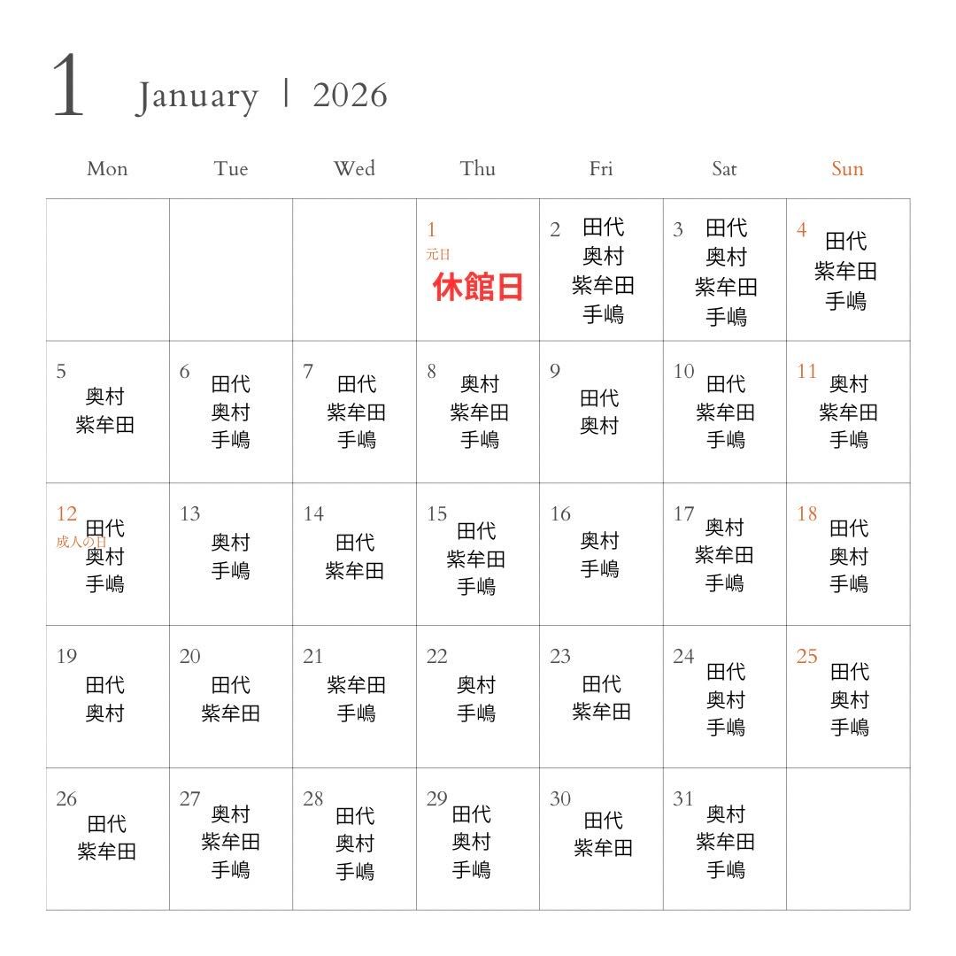 1/1(木)休館日