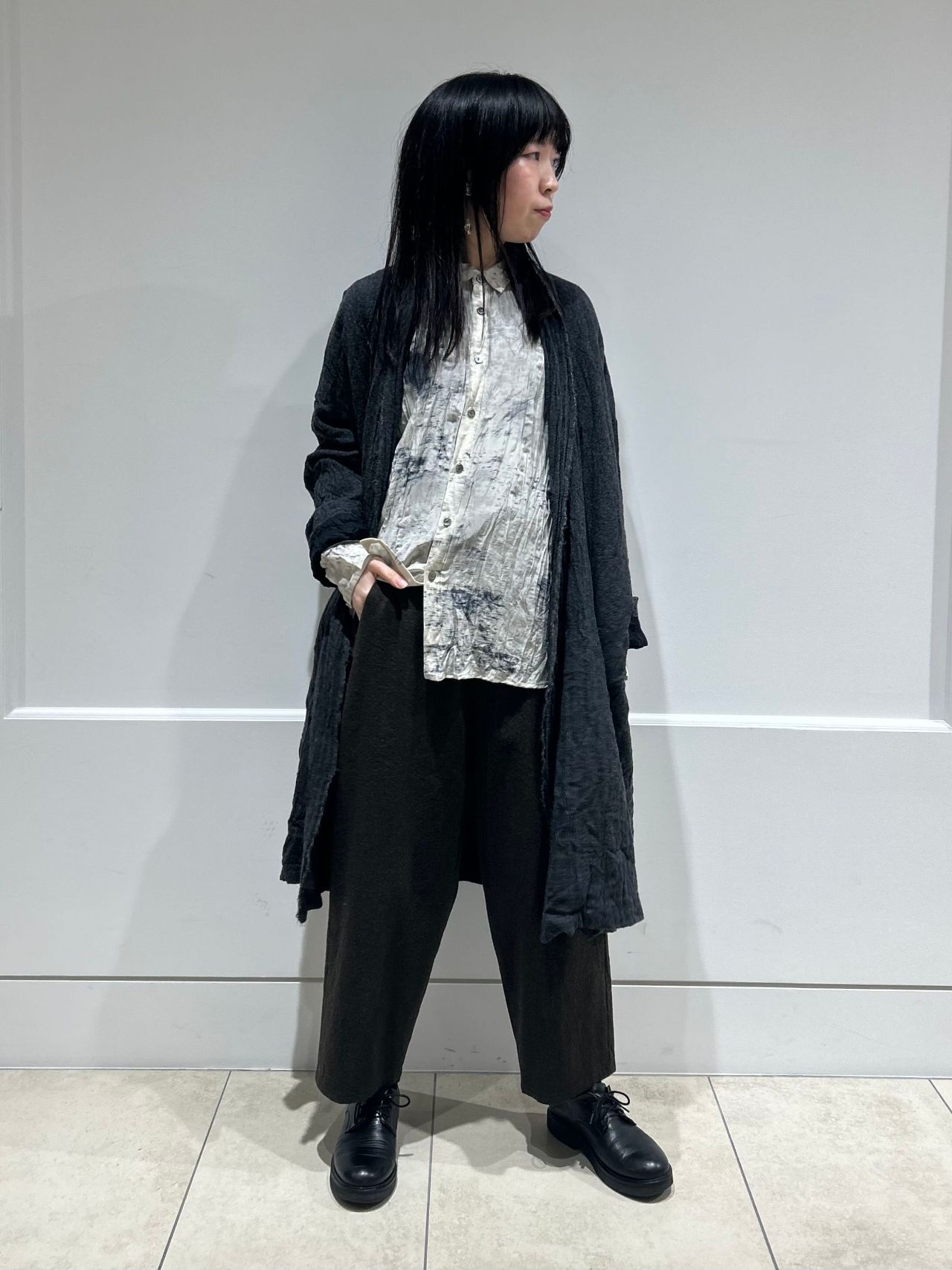 長めのレングスが縦のラインを強調し、フラットシューズからブーツまで合わせやすく好相性です。