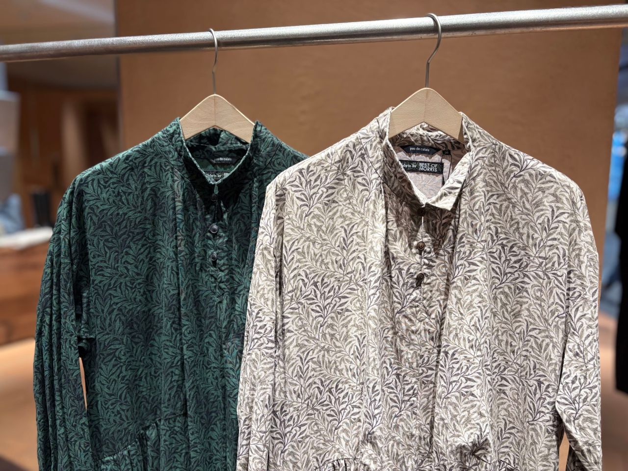 ウィリアム・モリスデザインのWillow Bough(ウイローボウ)プリントの綿素材を使用し、製品反応染めでパドカレらしい印象に仕上げました。