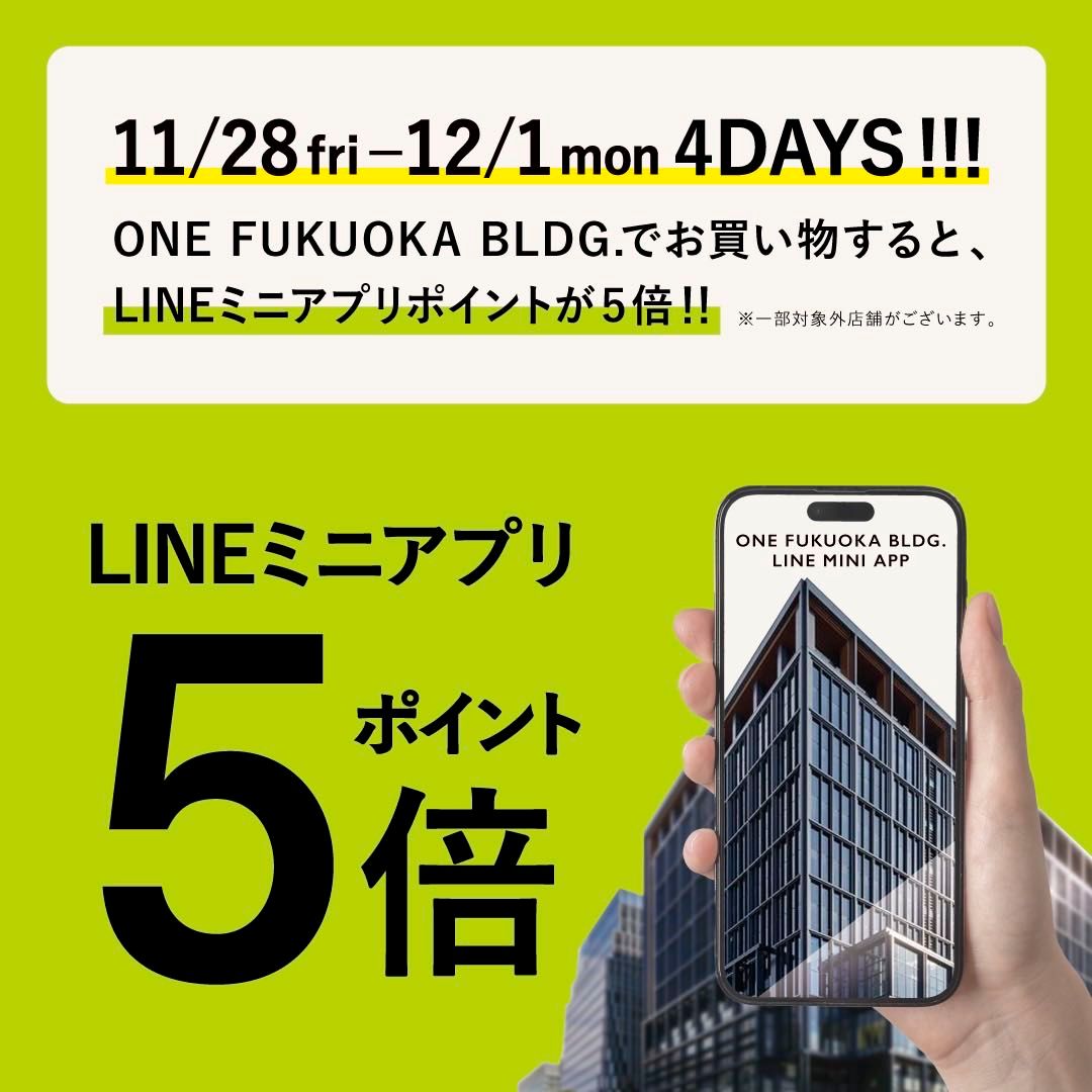 ONE FUKUOKA BLDG.の店舗でお買い上げされた方は、LINEミニアプリポイントを5倍進呈いたします。