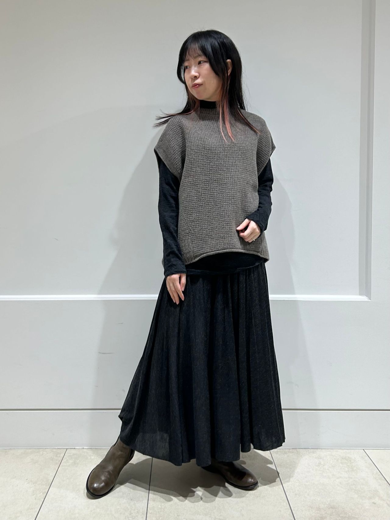 no.7382 ECO WOOLヘリンボン セミフレアースカート ¥41,800