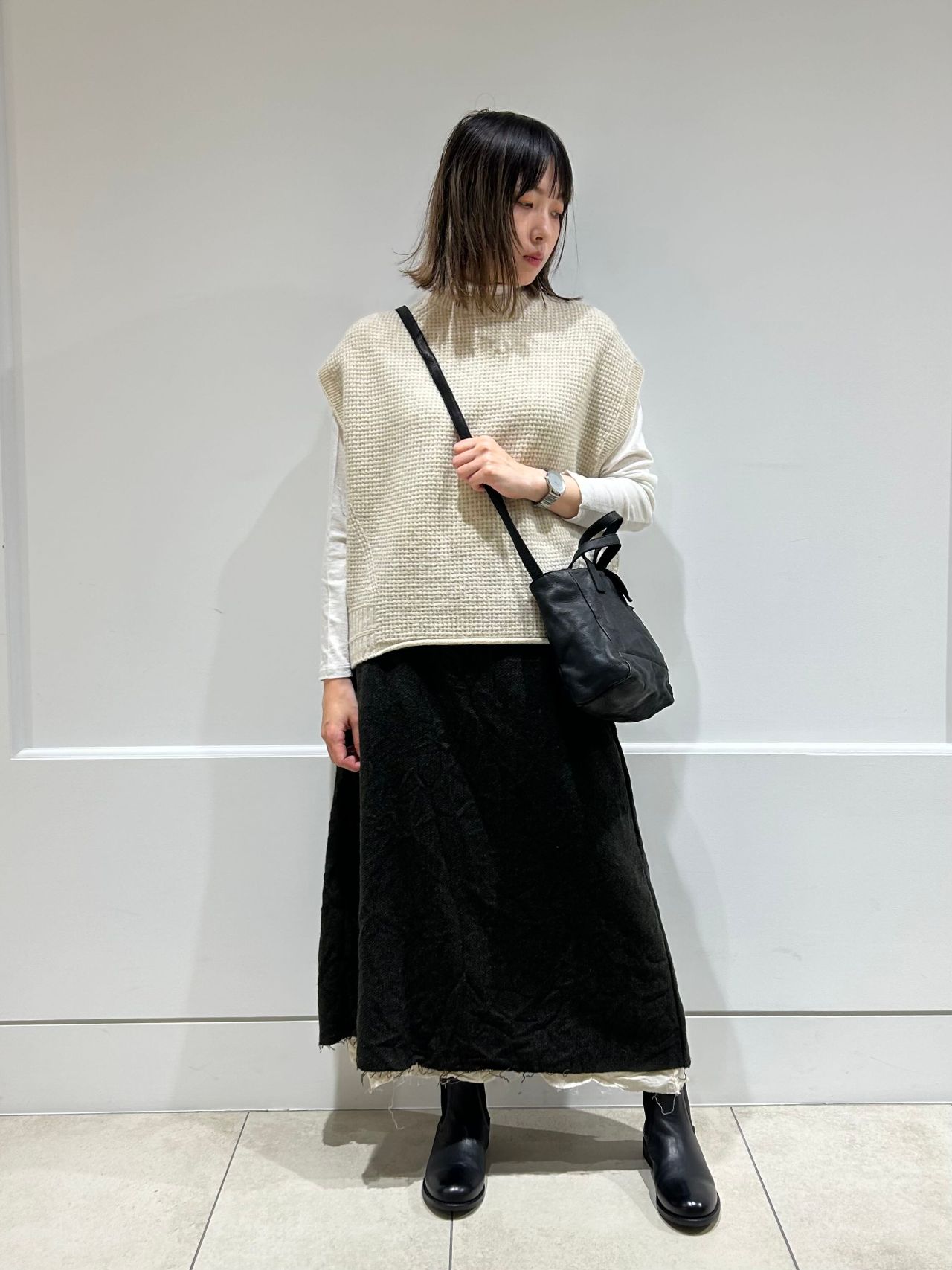 《coordinate》カシミヤラム柄編み ボートネックベスト