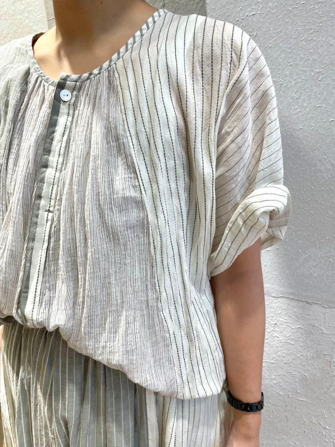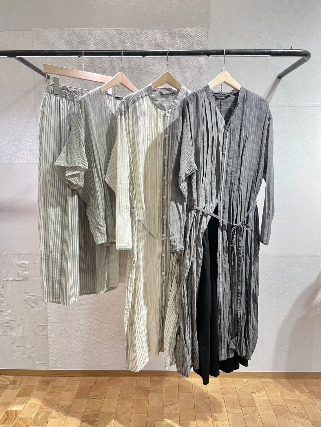 先染めストライプとドビー生地を組み合わせ、グラデーションのようにしております。