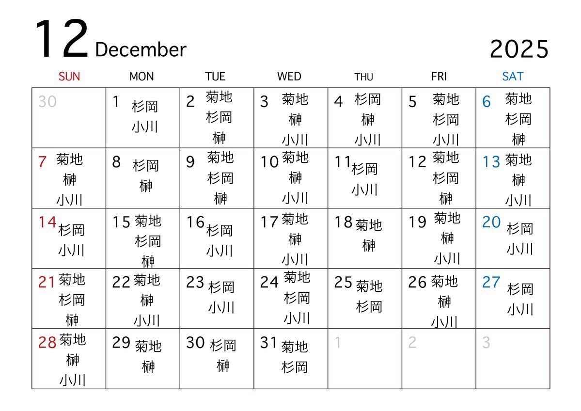 【12月staff schedule】