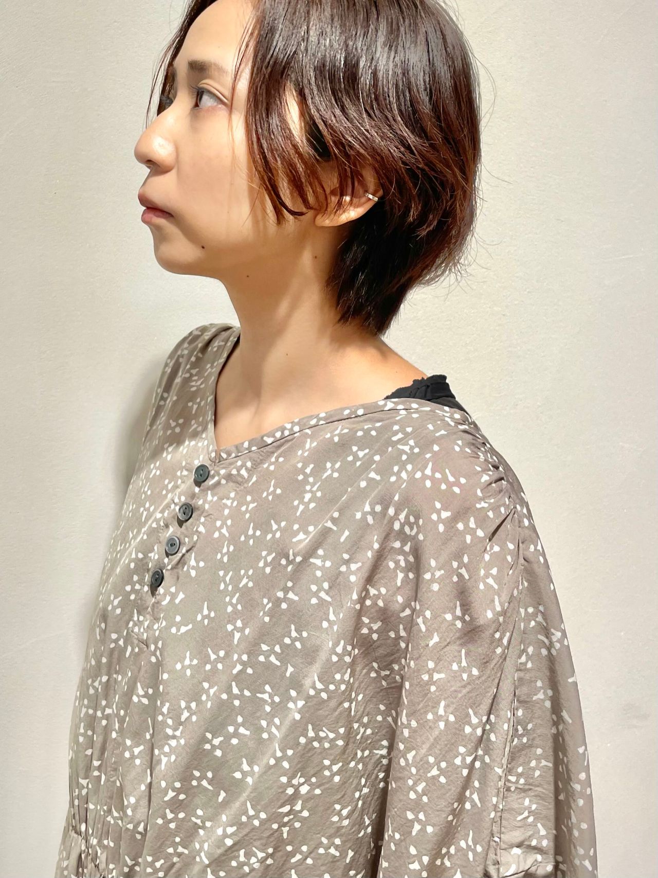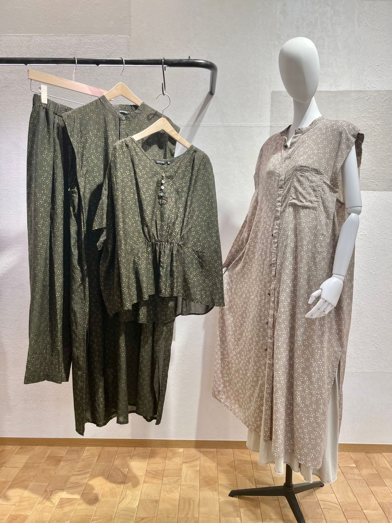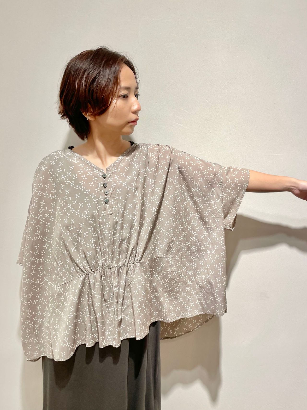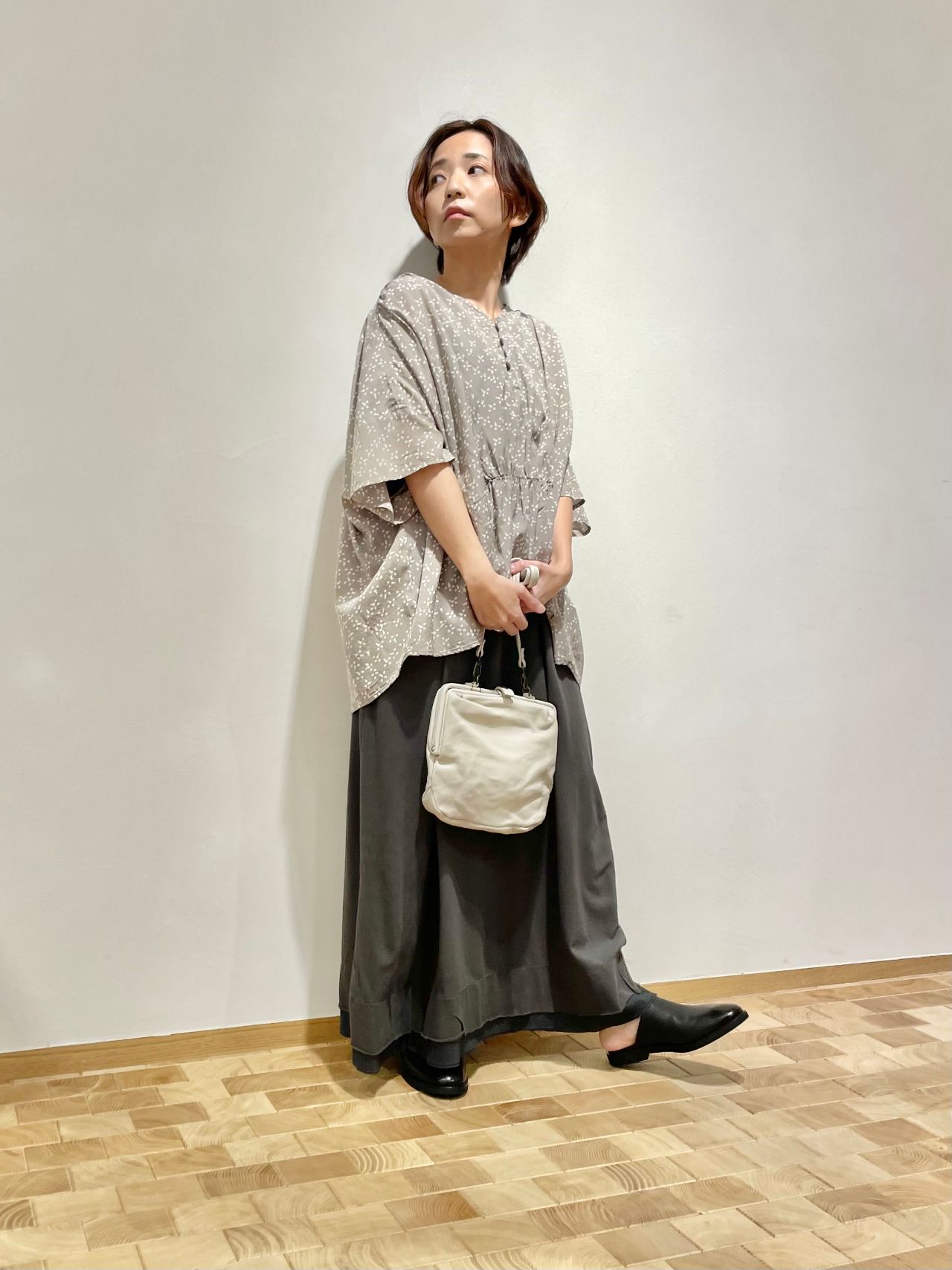 女性らしいVネックとギャザーが施されているので、シンプルなIラインのワンピースと合わせました。