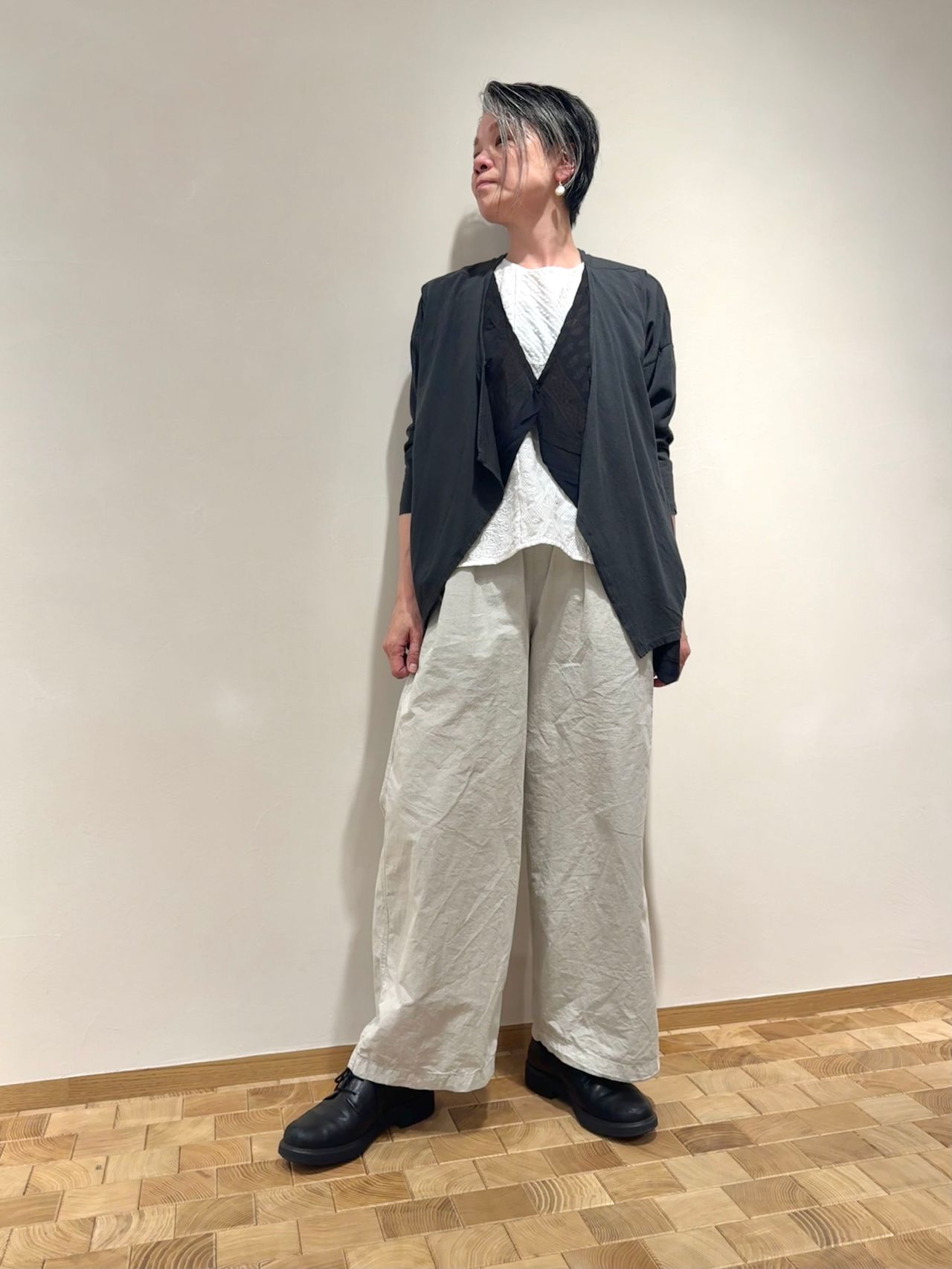 no.1019 color .charcoal(着用)、khaki