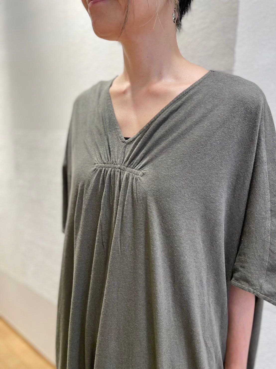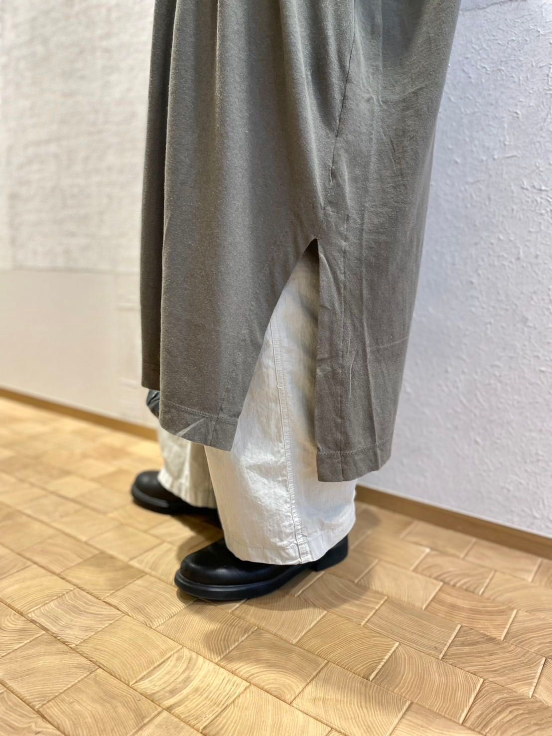 ふんわりとしながらもさらりとした麻混でドライタッチな綿麻天竺と、程よい厚さのプレーティング天竺を使用した軽やかなワンピース。
