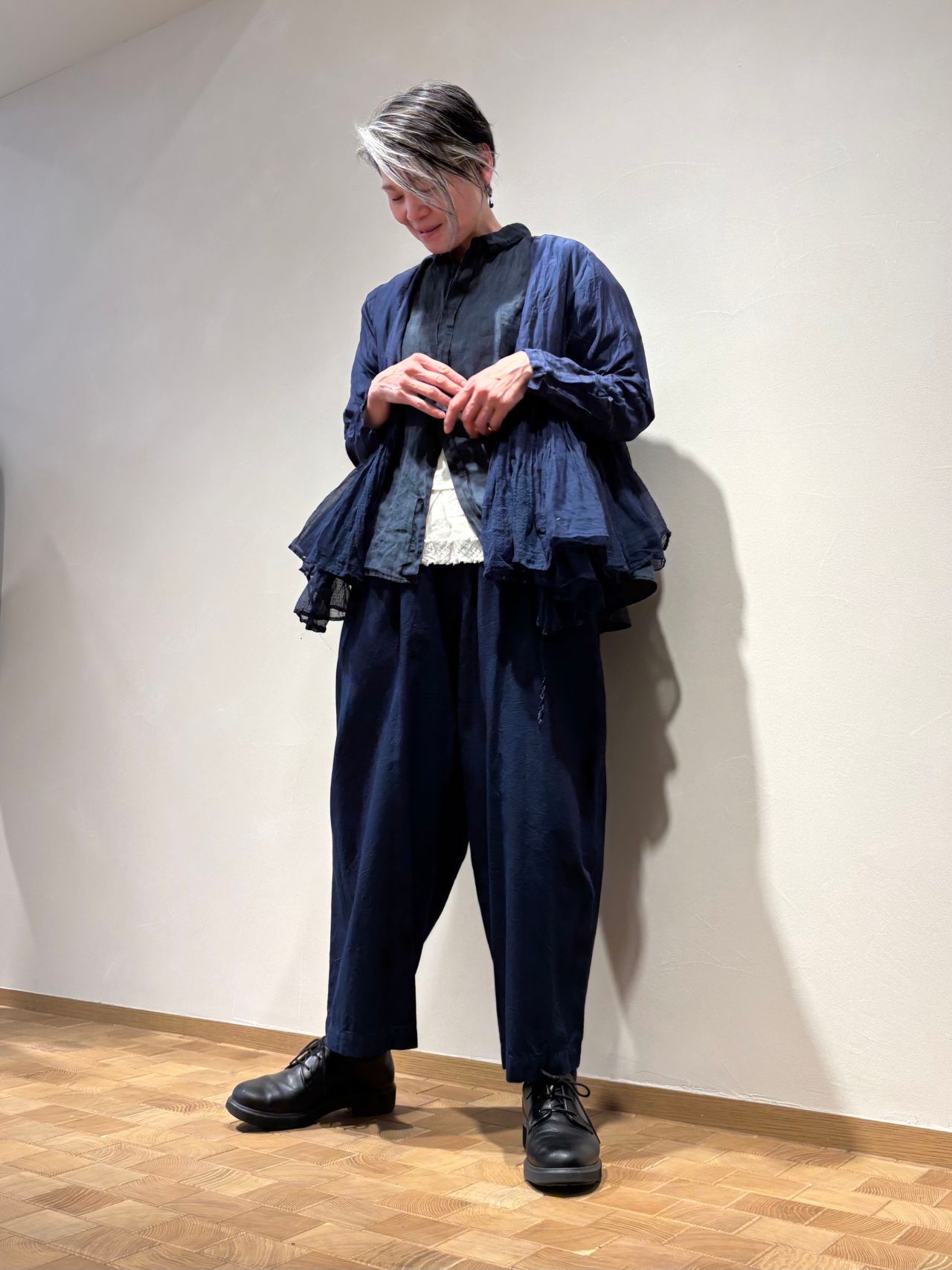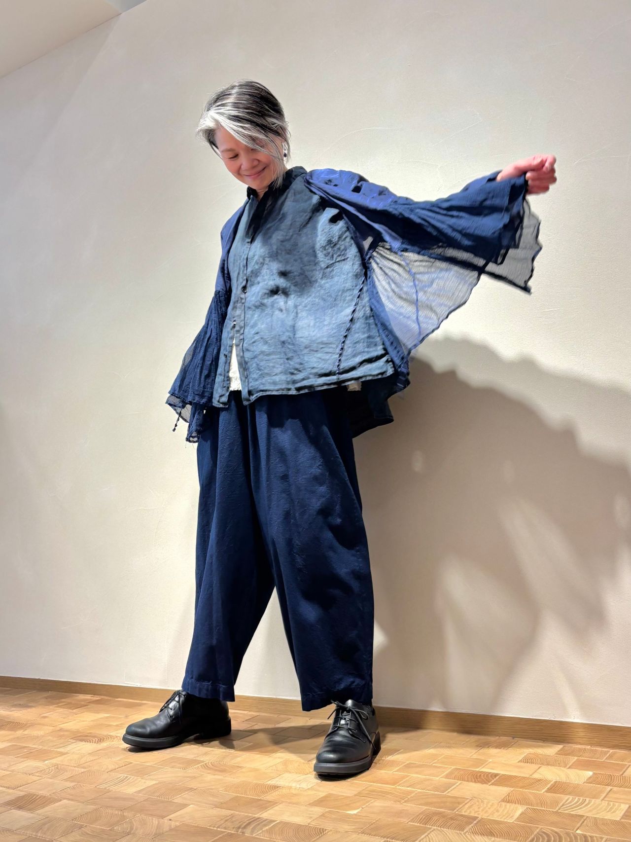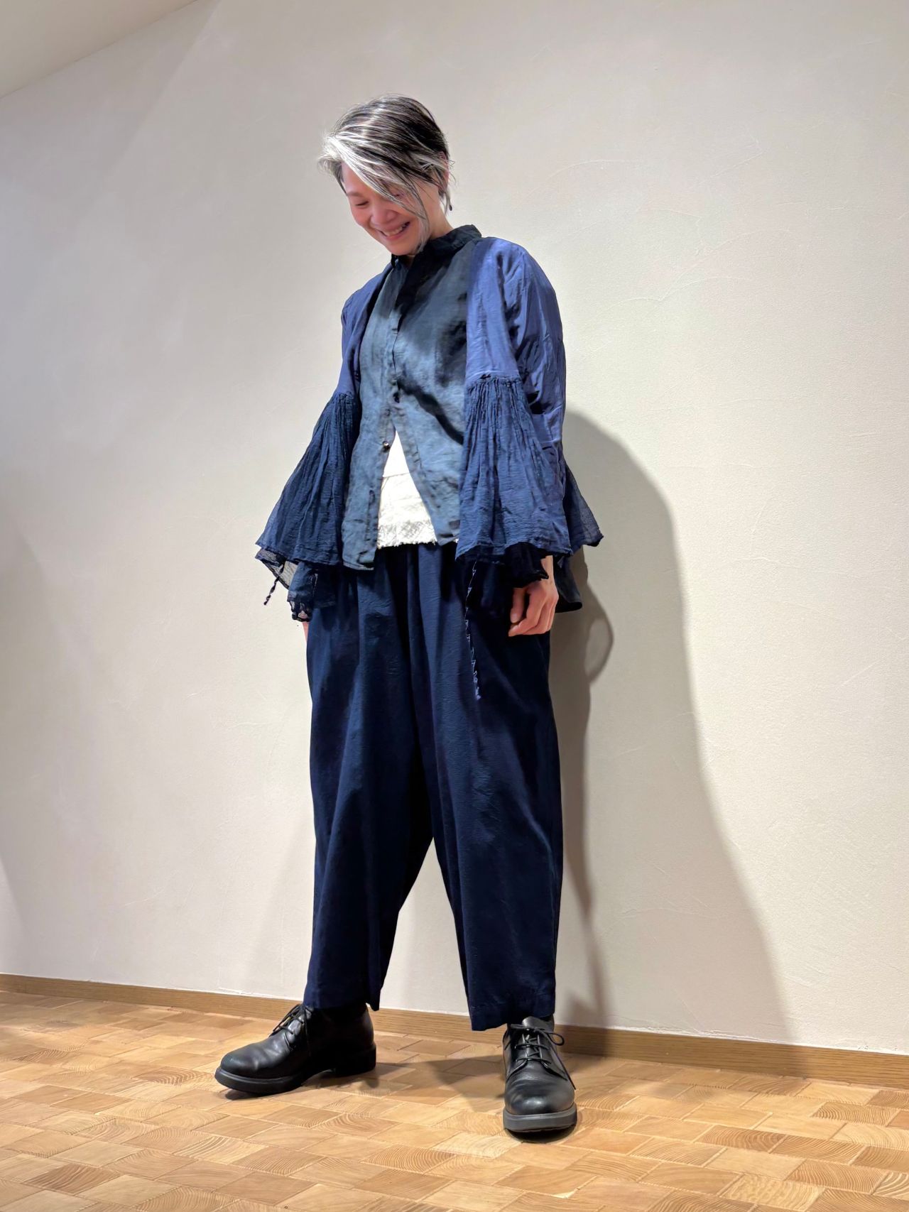 インディゴ染めのナチュラルさとコットンシルクのツヤ感