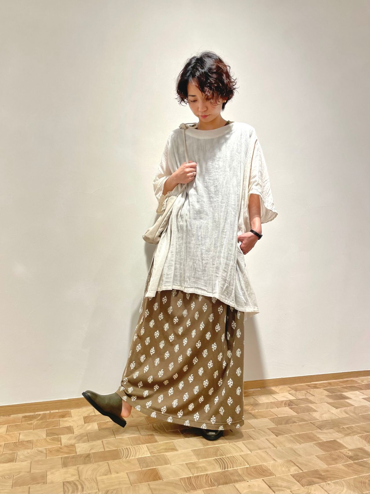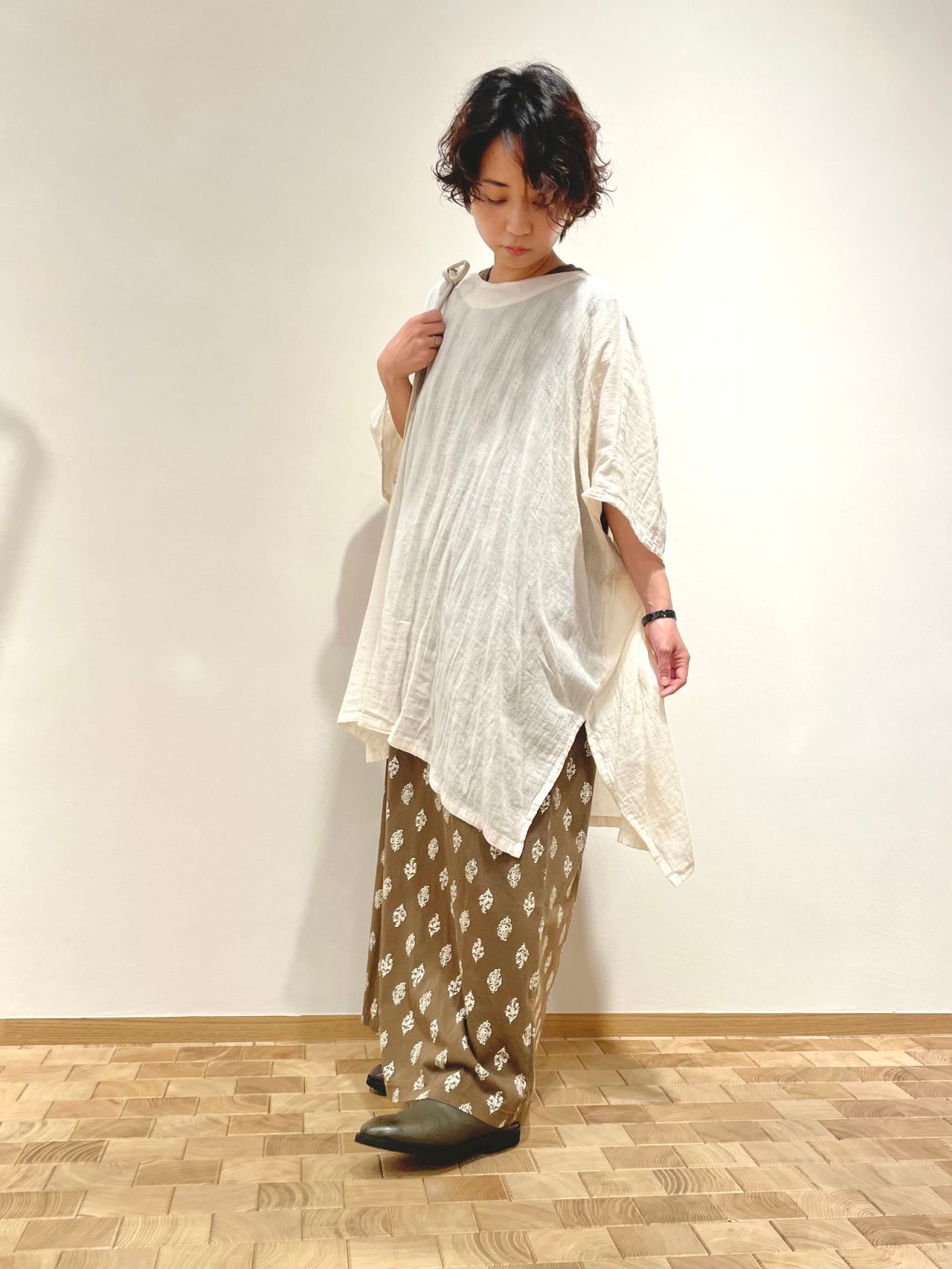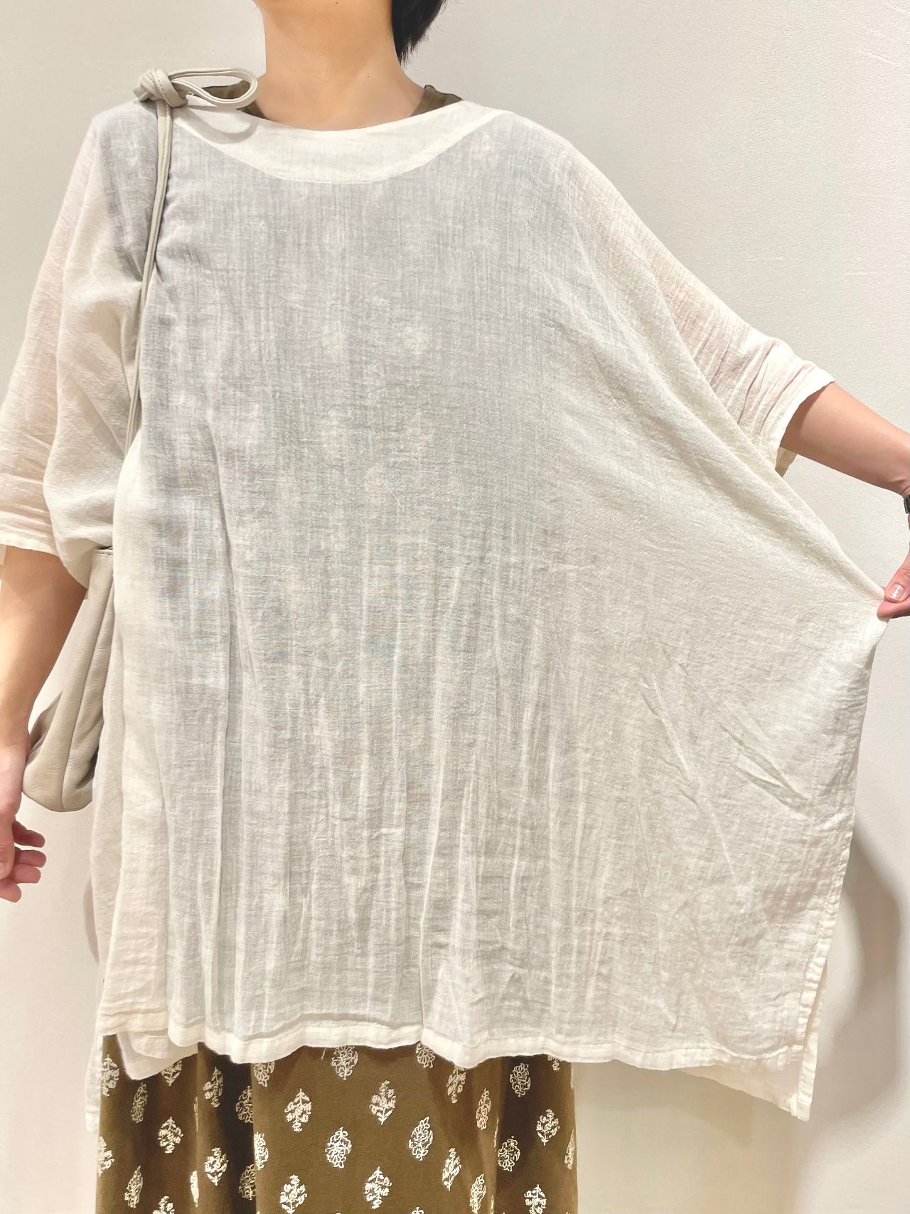 軽く、柔らかいコットンガーゼのブラウスを羽織りました。
