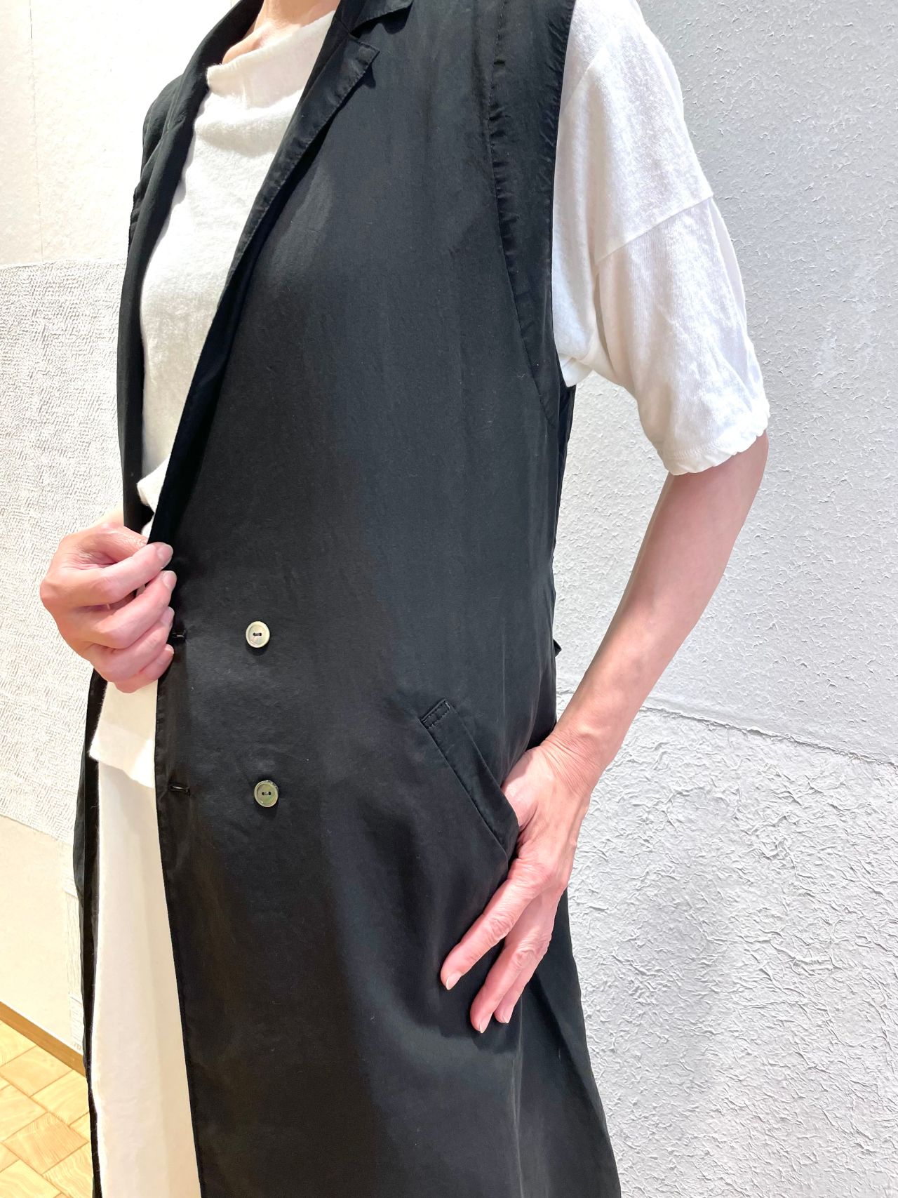 マスキュリンな印象のテーラードカラーで、ダブルボタンの合わせでクラシックな雰囲気なロングジレです。