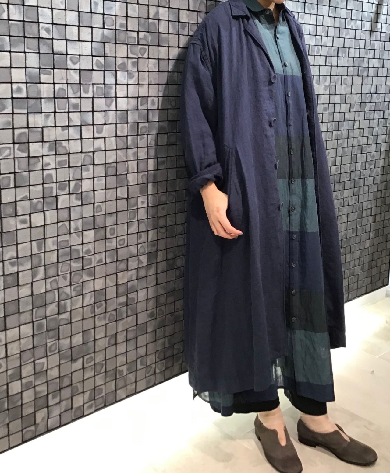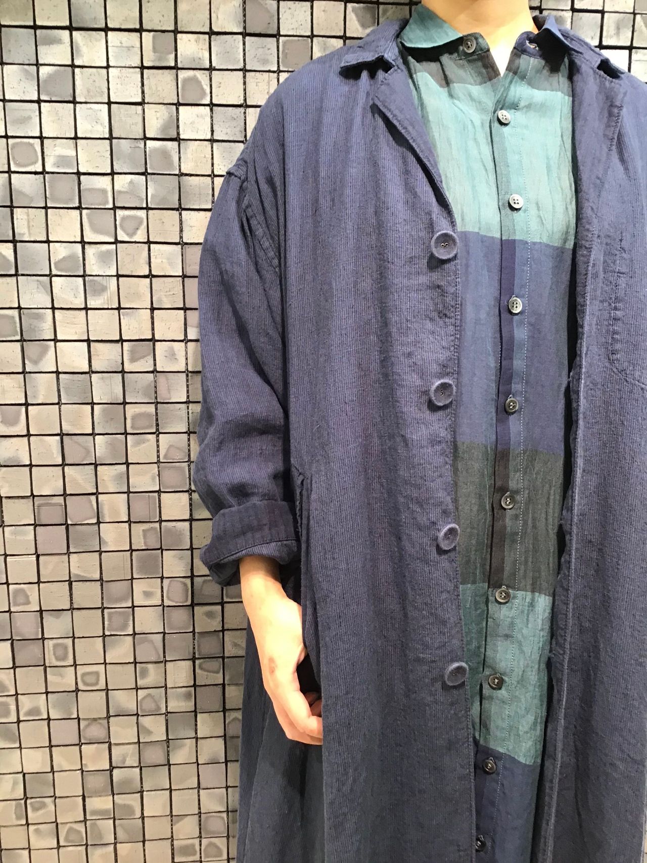 パドカレでは珍しく、襟の形がハッキリしており、チェック柄でもカジュアルすぎない雰囲気で着ていただけます。
