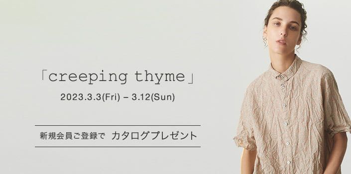 3月3日(金)〜12日(日) 期間中、「creeping thyme」を記念して、新規会員ご登録で、