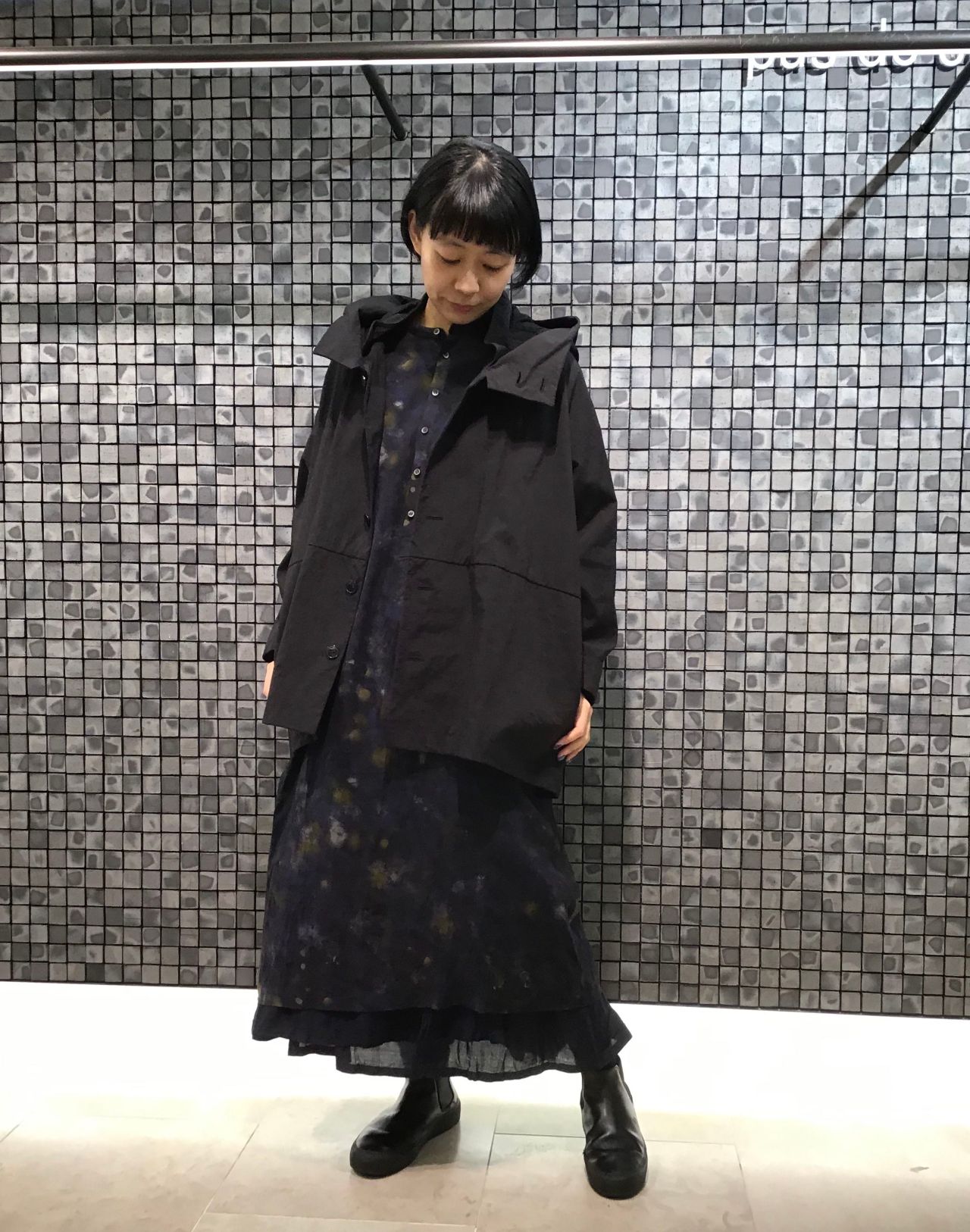 今回は、とろみあるワンピースにオーバーサイズのジャケットで、絶妙なバランスのコーディネートをご紹介致します。