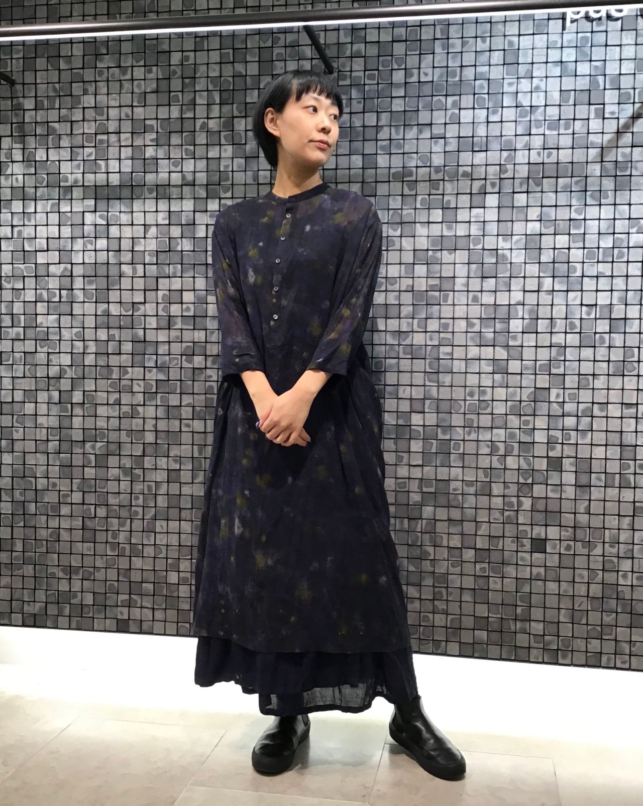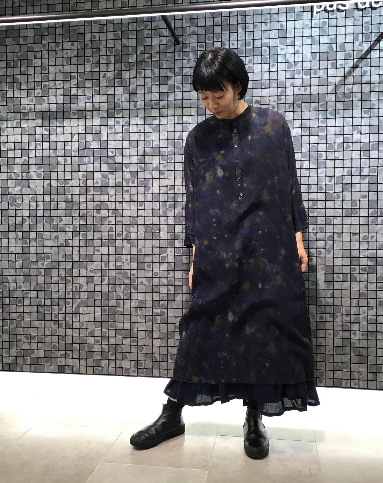 ワンピースは、ギャザーを無くして、キュプラコットンの自然な落ち感を表現しています。