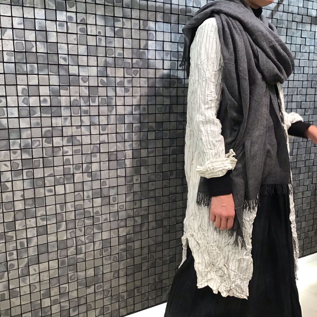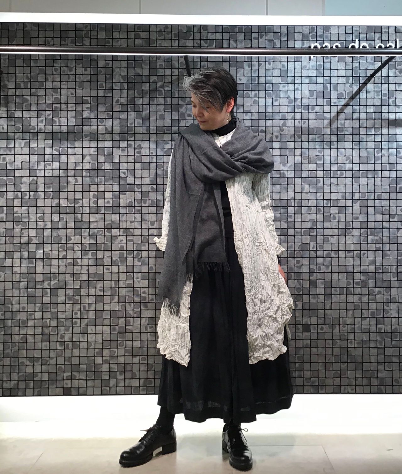 ふんわりとした素材とワッシャーのガサガサとした異素材の組み合わせ。