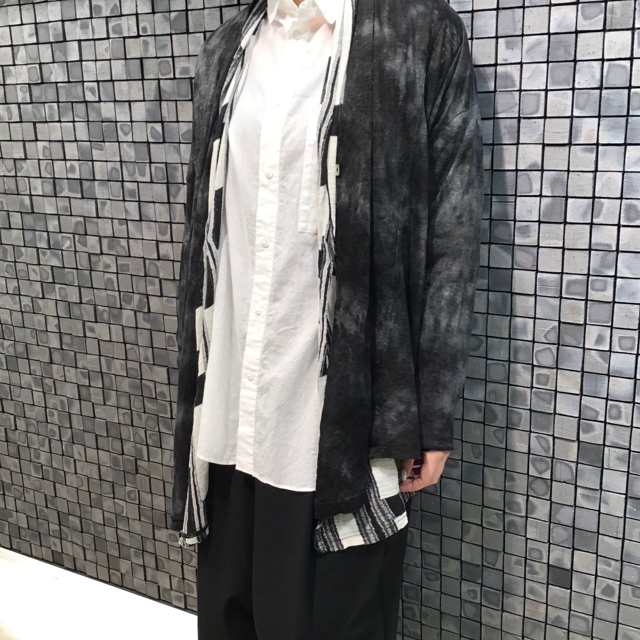 全体的にボヤっとしたアンニュイな染め模様は、ハッキリとしたジャガード柄と相性◎