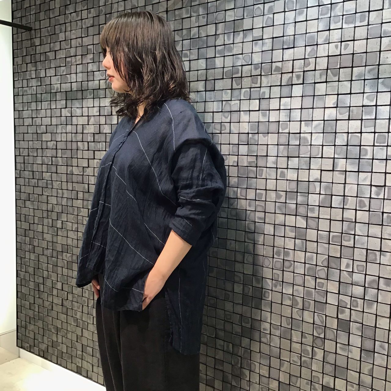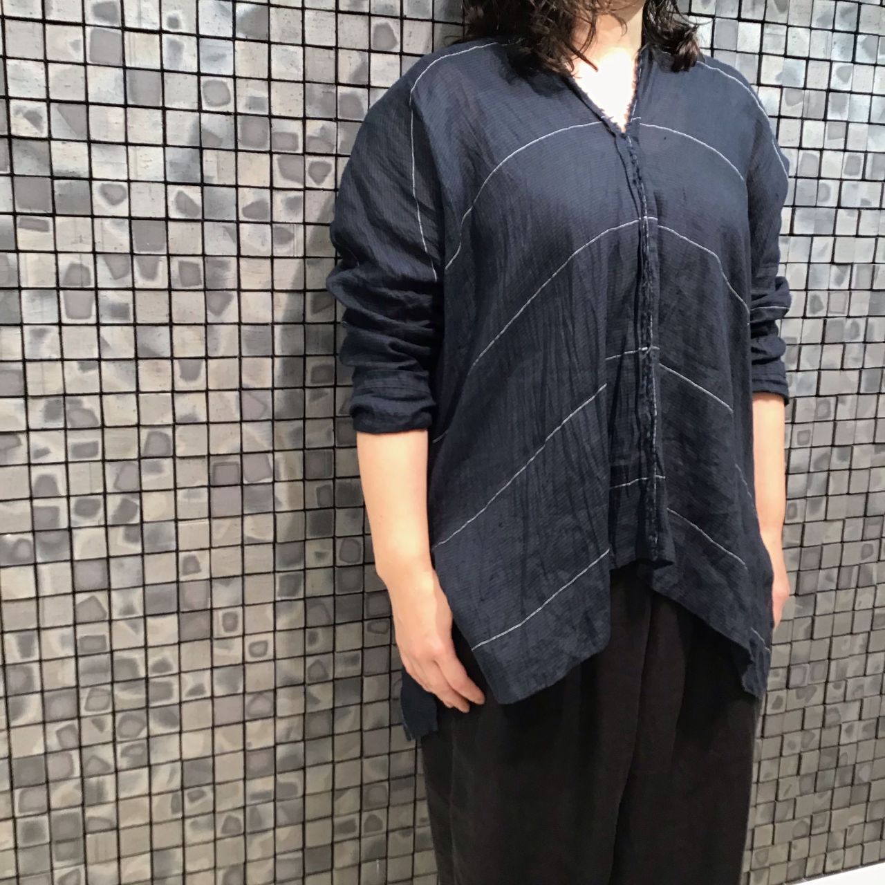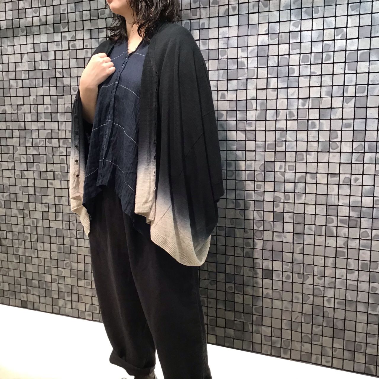 薄手の素材で、肘が隠れるくらいの袖丈なので今時期から活躍しそうです。