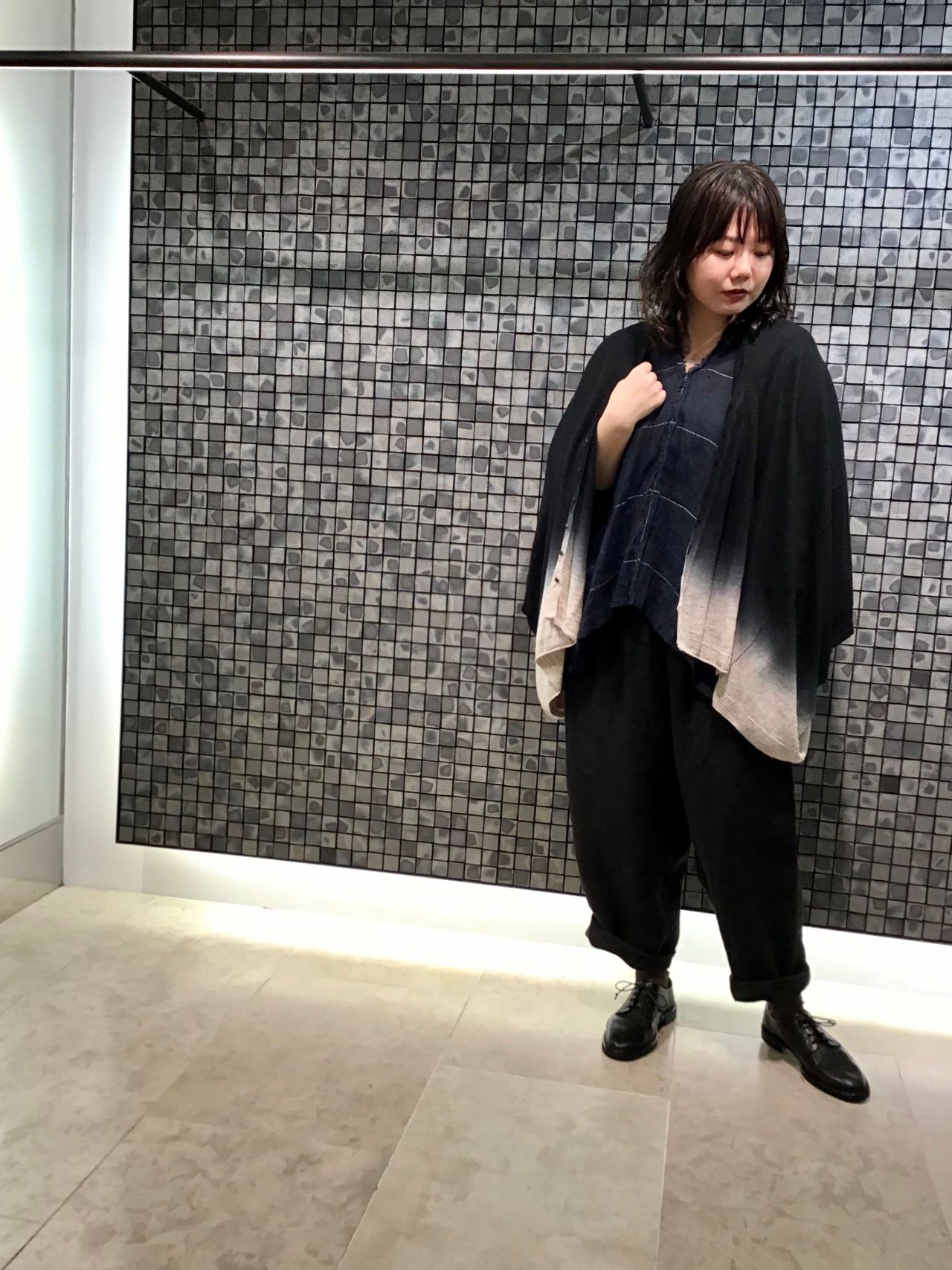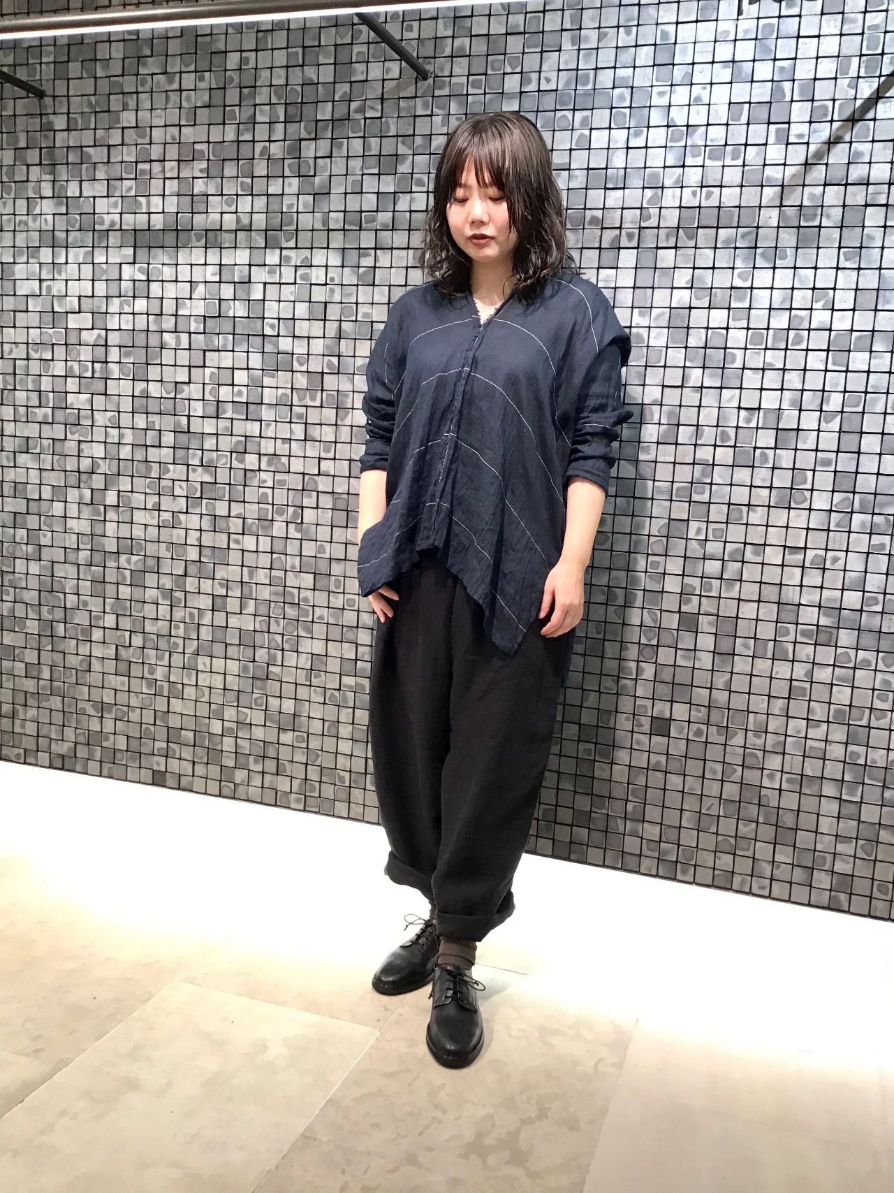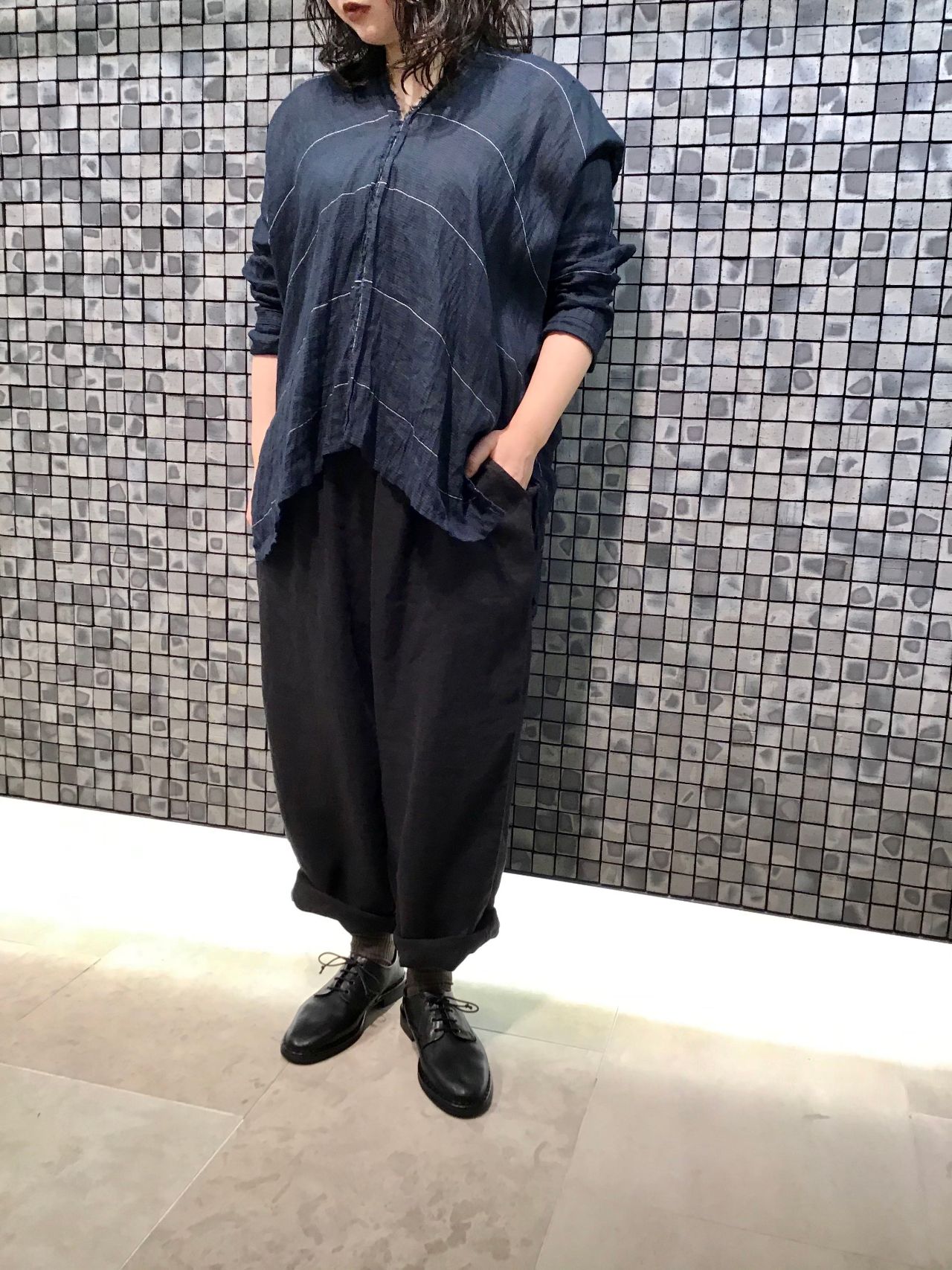 薄手の素材で、肘が隠れるくらいの袖丈なので今時期から活躍しそうです。