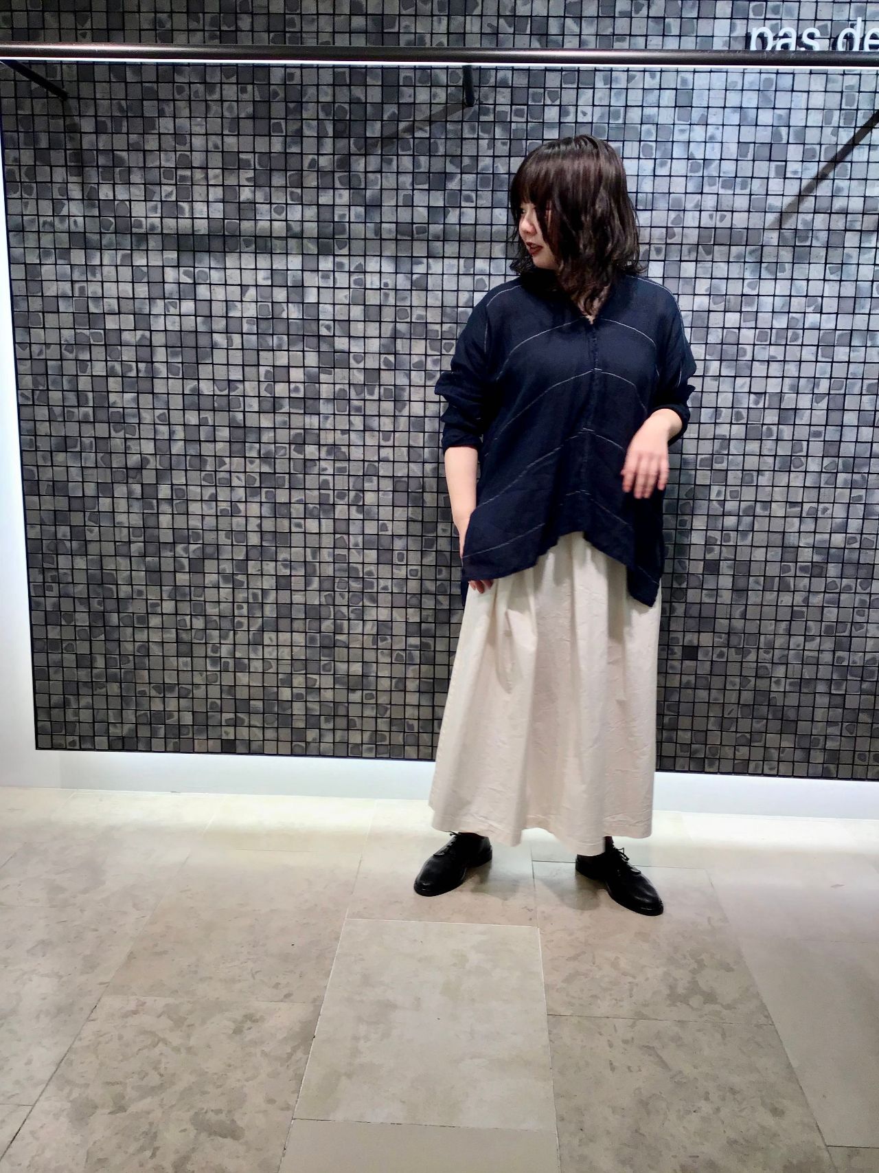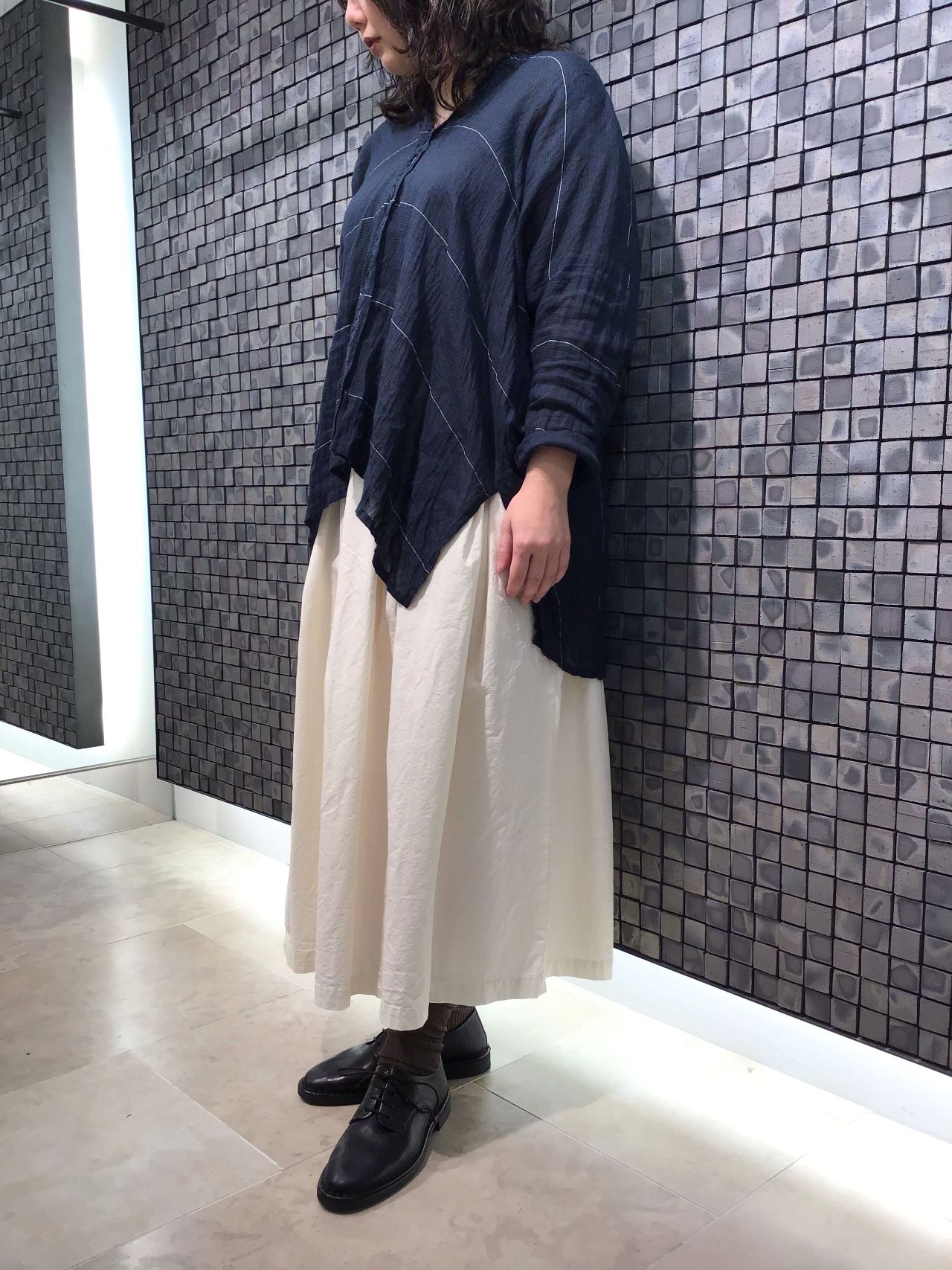 今回のコーディネートは、さらっとした素材のバンブー混ボーダーのブラウスを主役に。