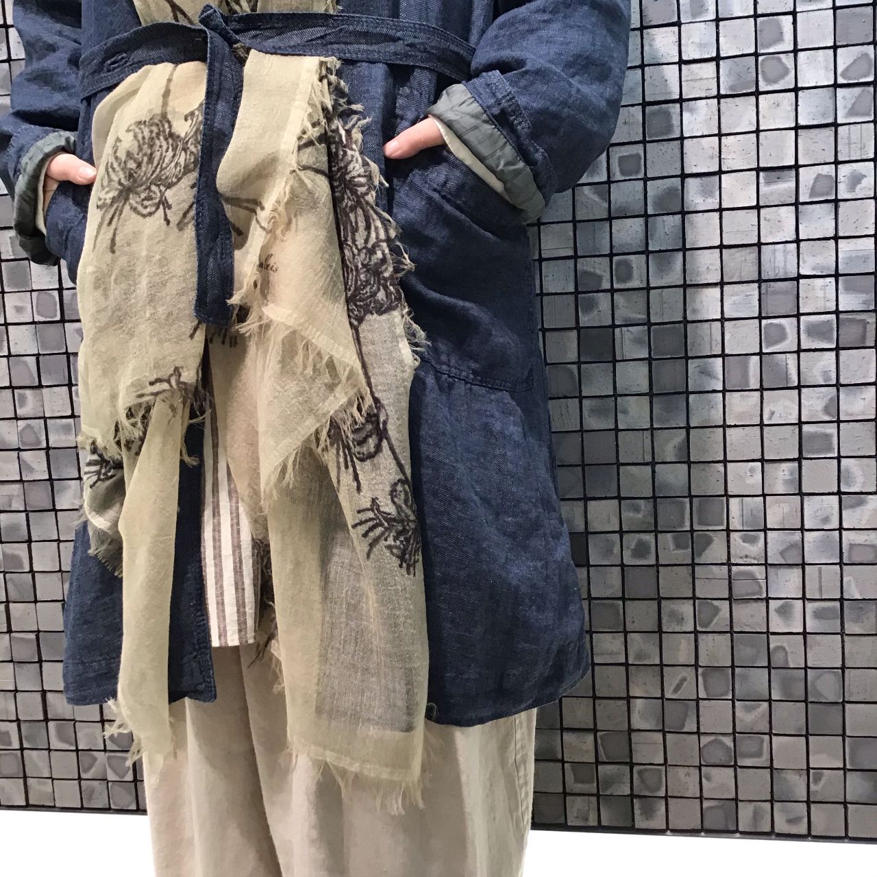 花柄のカシミヤのストールは京王新宿店で人気のお品。
