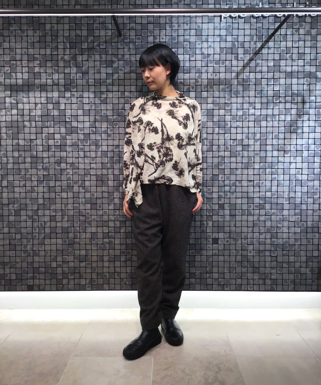 本日は、ウールガーゼシリーズから、面白い形のカットソーが出ましたので、