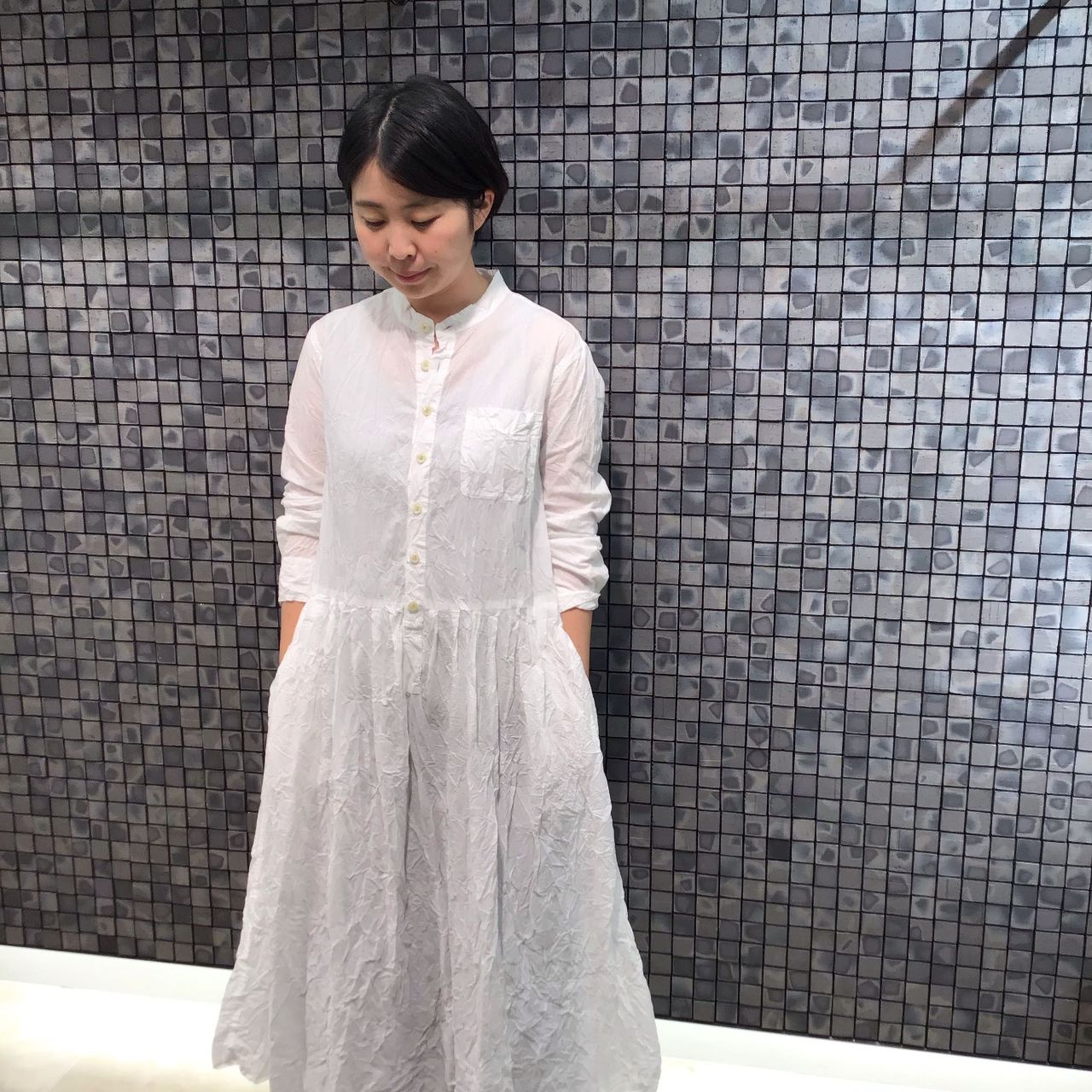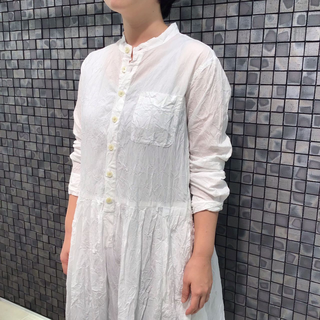 シワ加工がパドカレらしいかぶりタイプのワンピース。