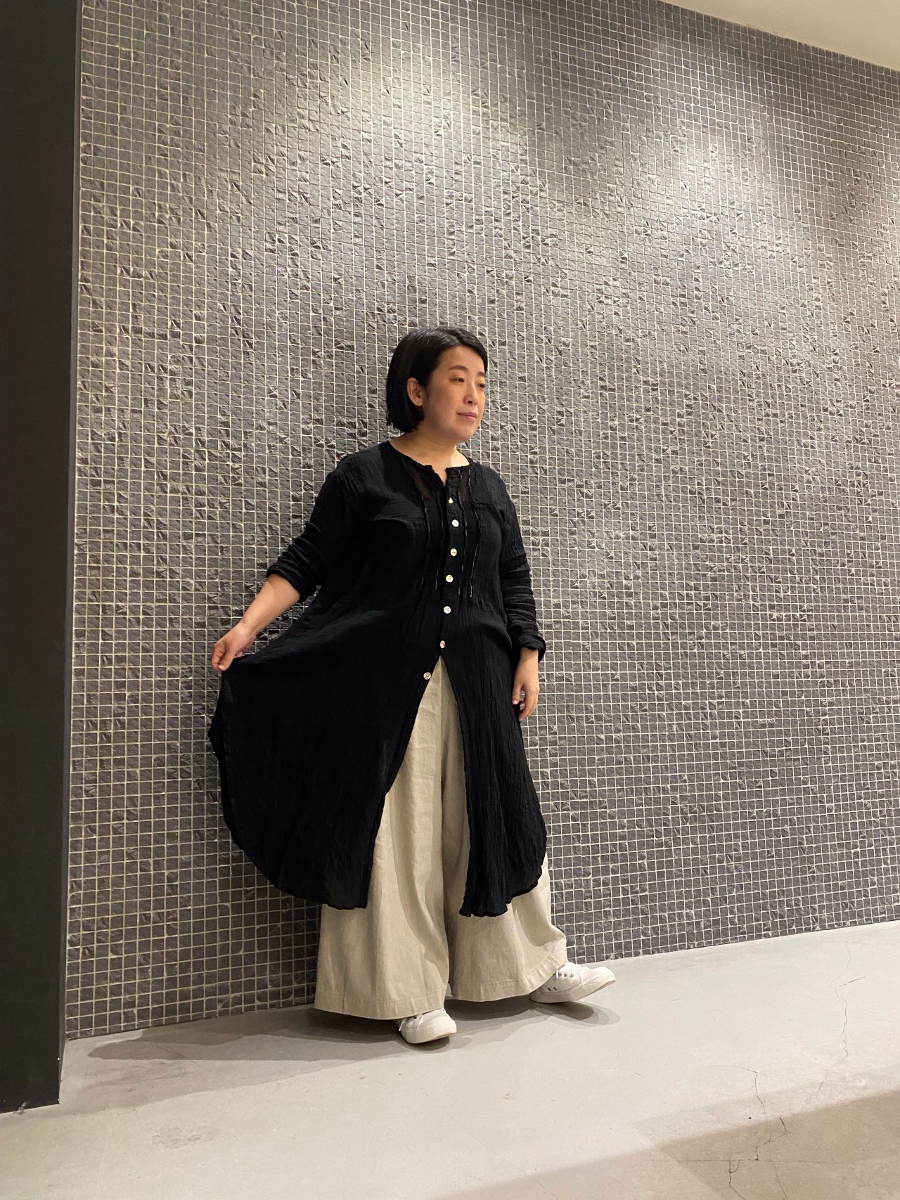 前開きなので、羽織りとしてもオススメ。
