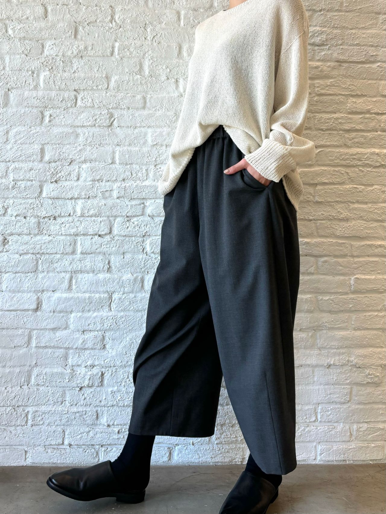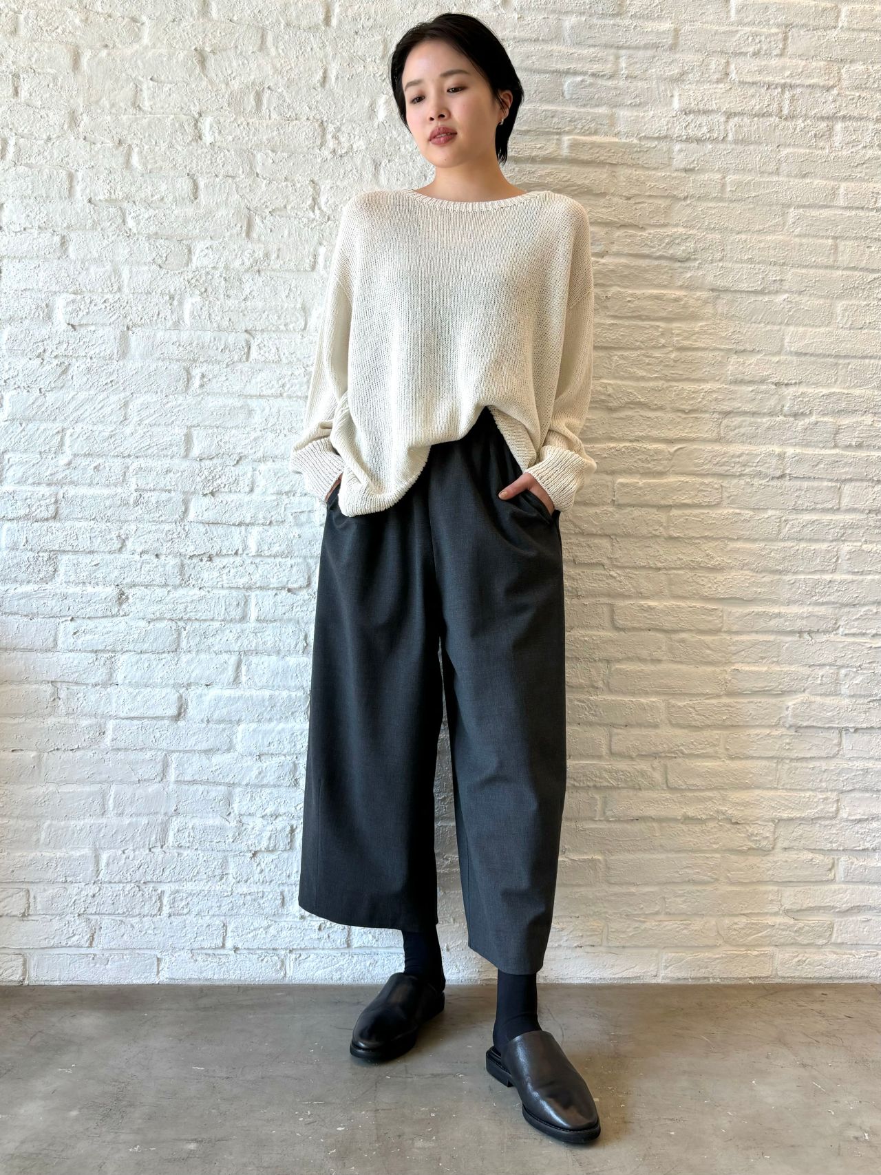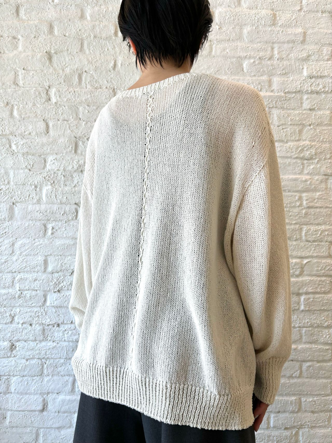 和紙を極めて細くスリットさせて糸に撚りこんだニットプルオーバー