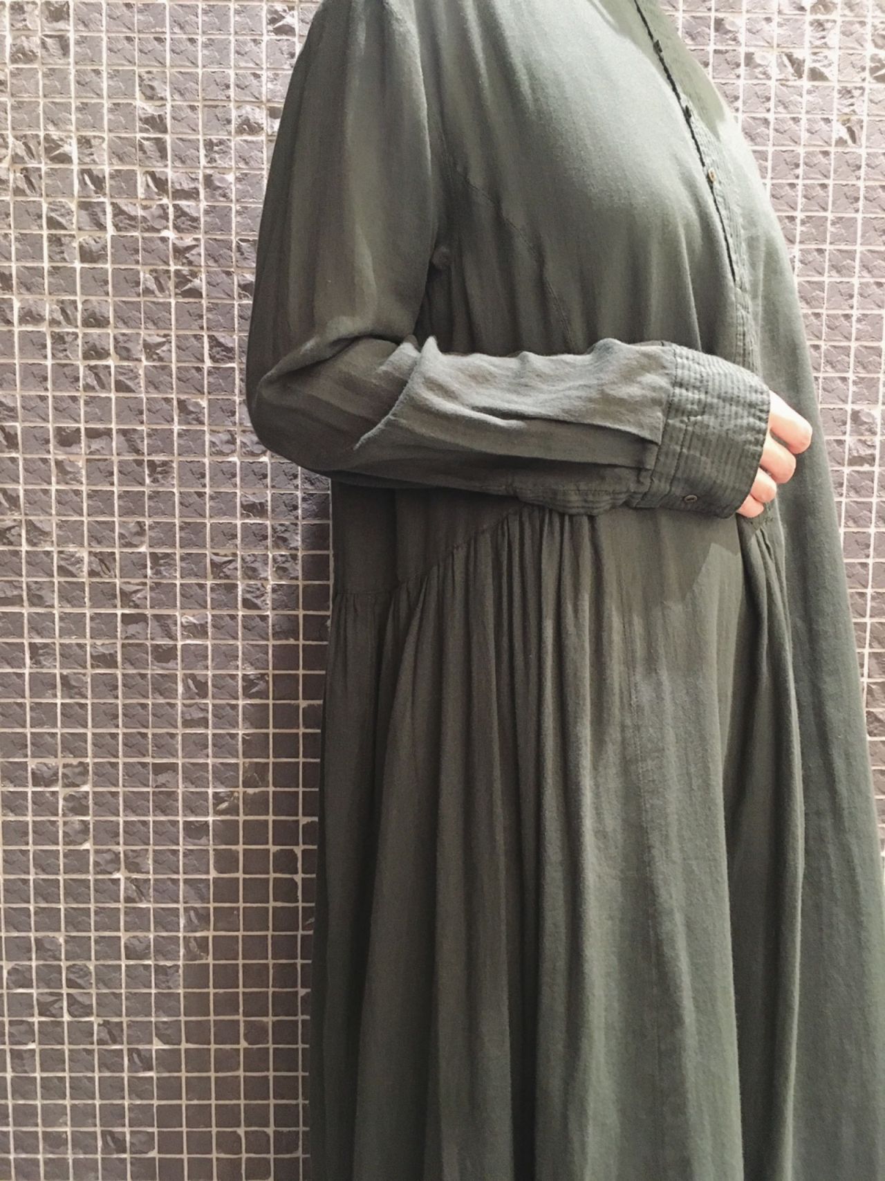 9月中旬入荷予定のコットンジョーゼットのワンピースはシルエットと生地感が完璧にマッチした一枚。