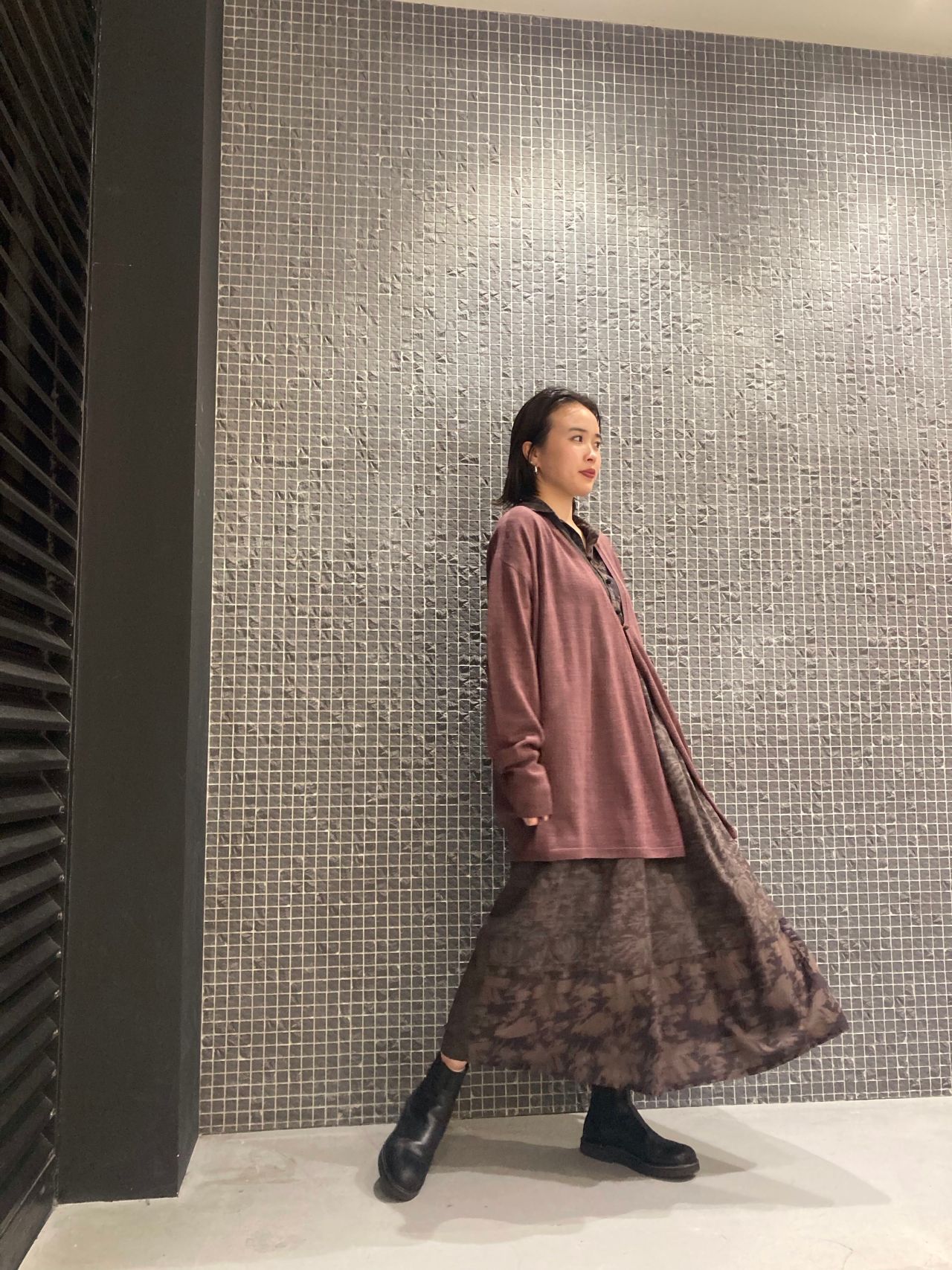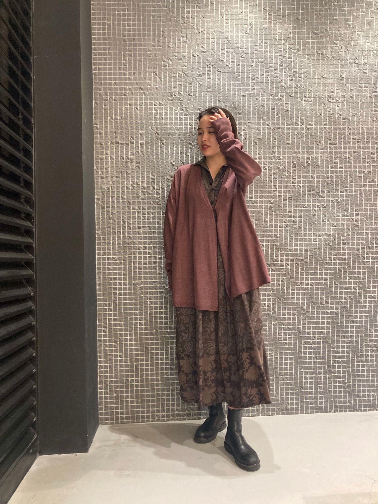 薔薇の花びらで染めたカーディガンを合わせてみました。