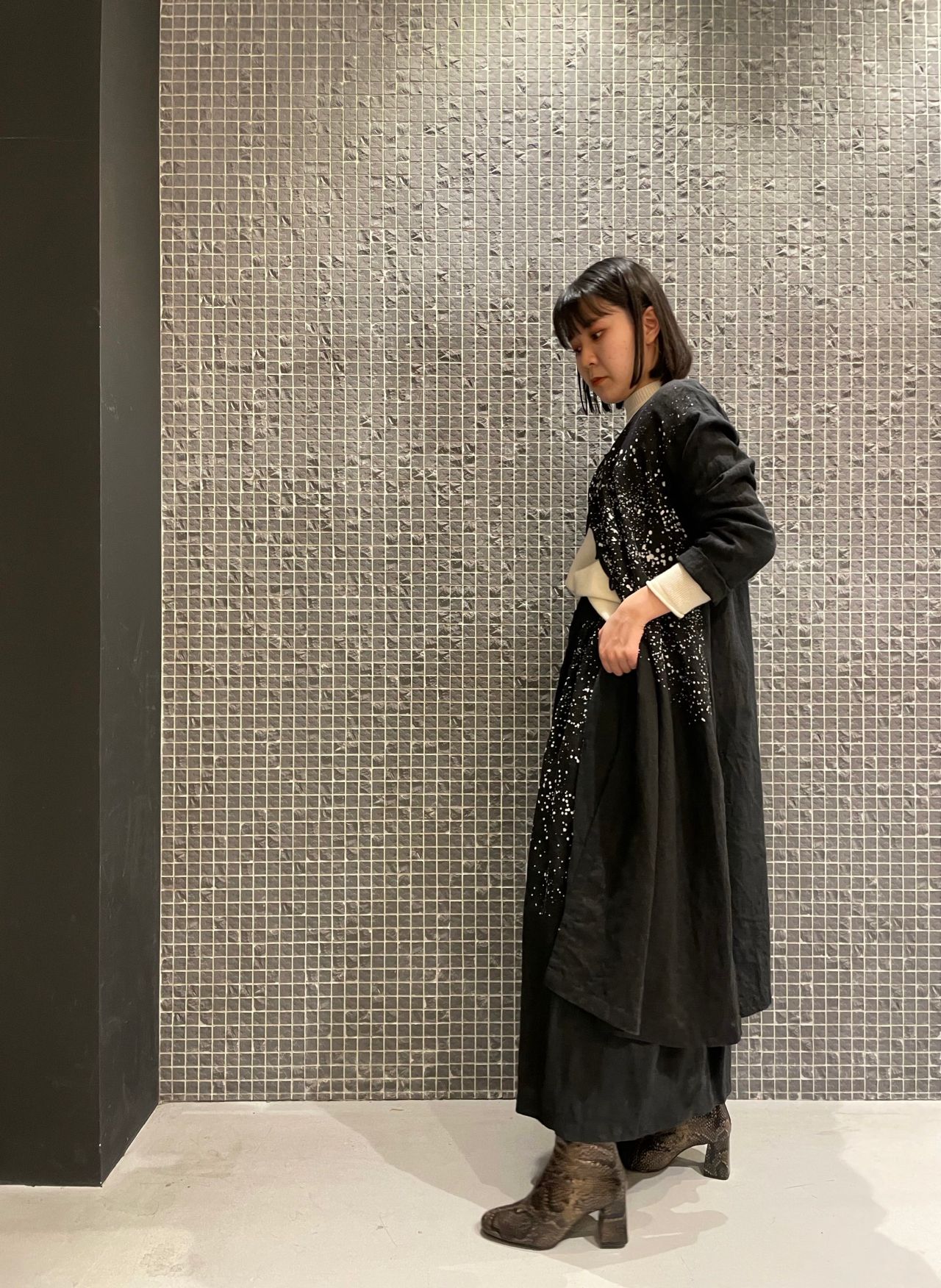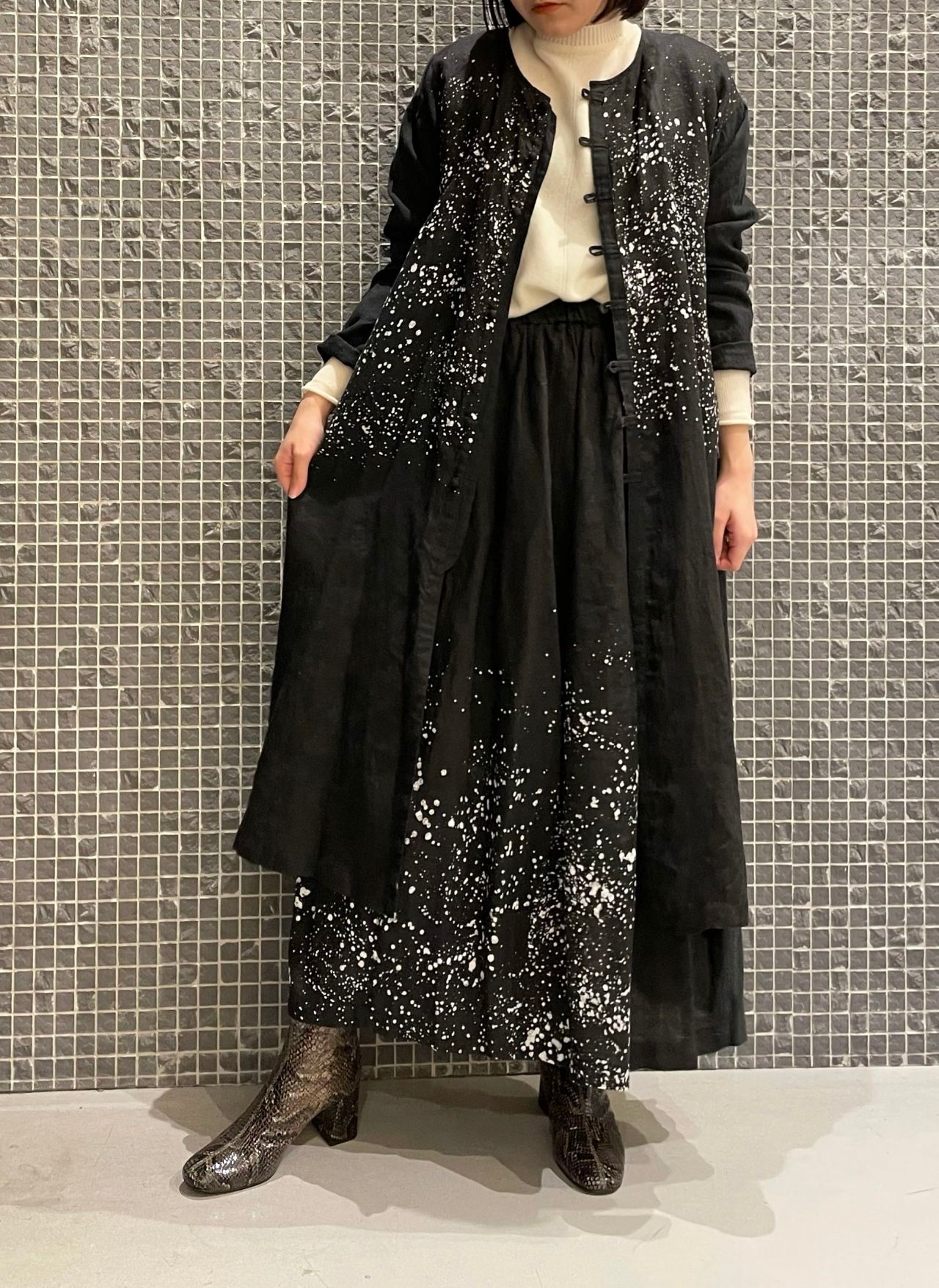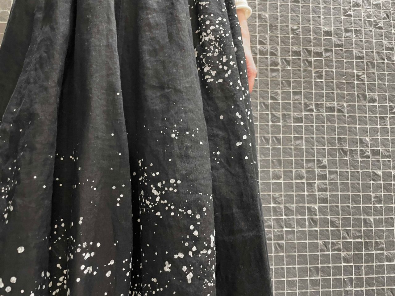 水滴のように細かく散った柄が印象的なろうけつ染のスカート。