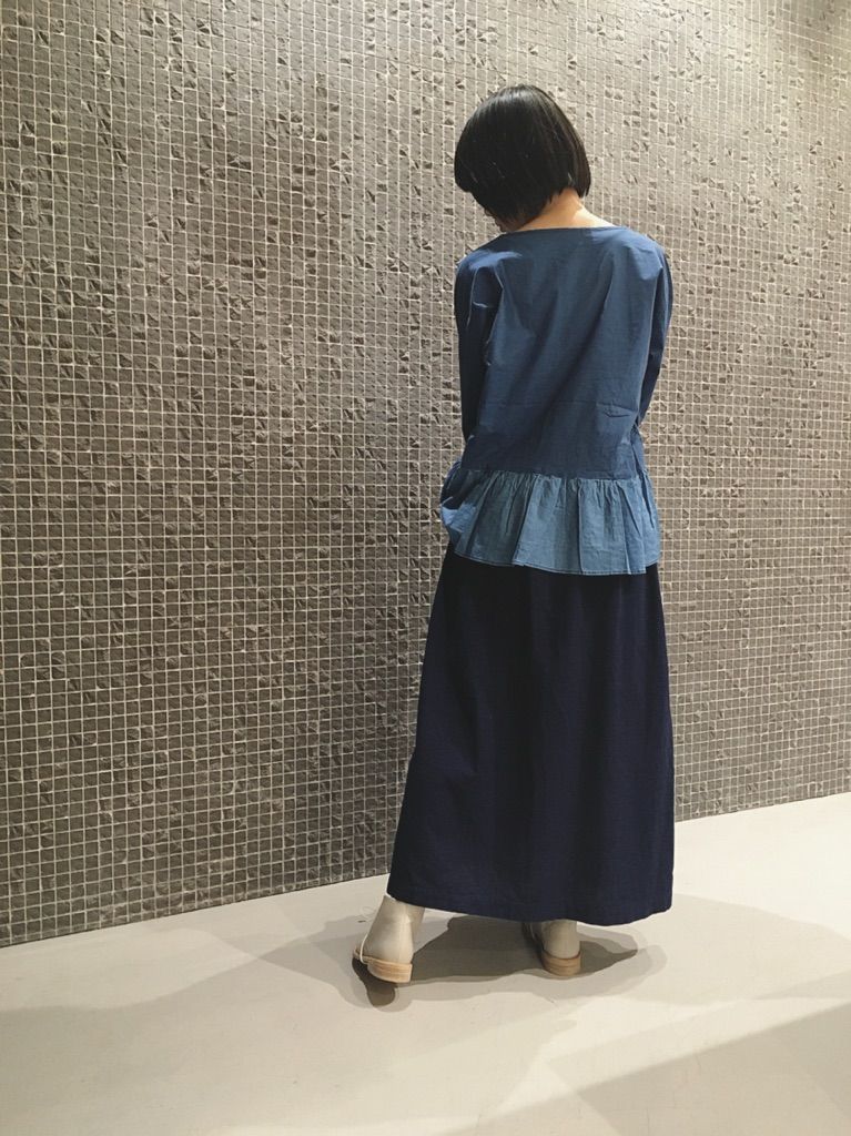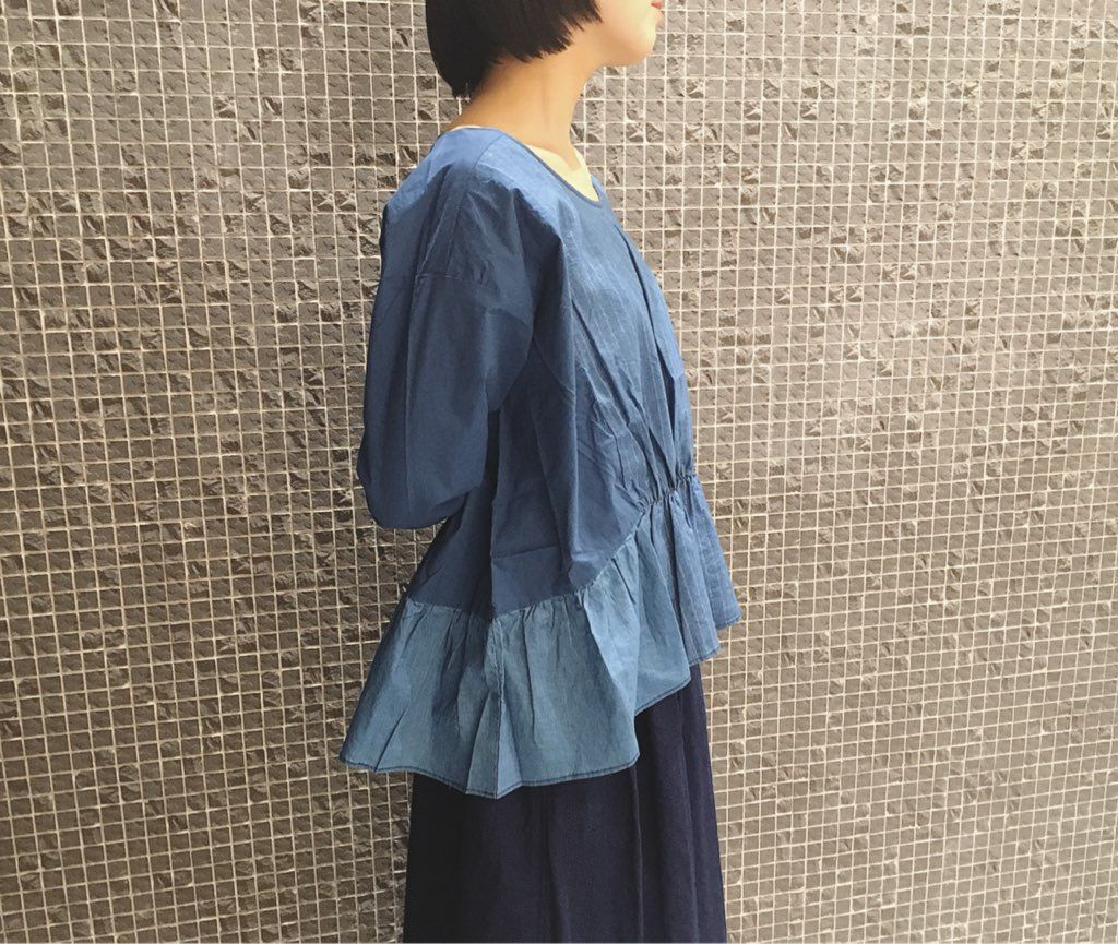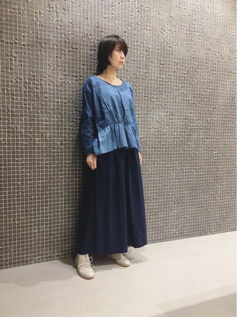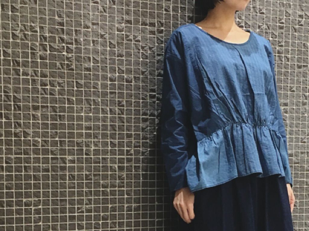 インディゴ素材のブラウスがフワッとしていて着心地も抜群。