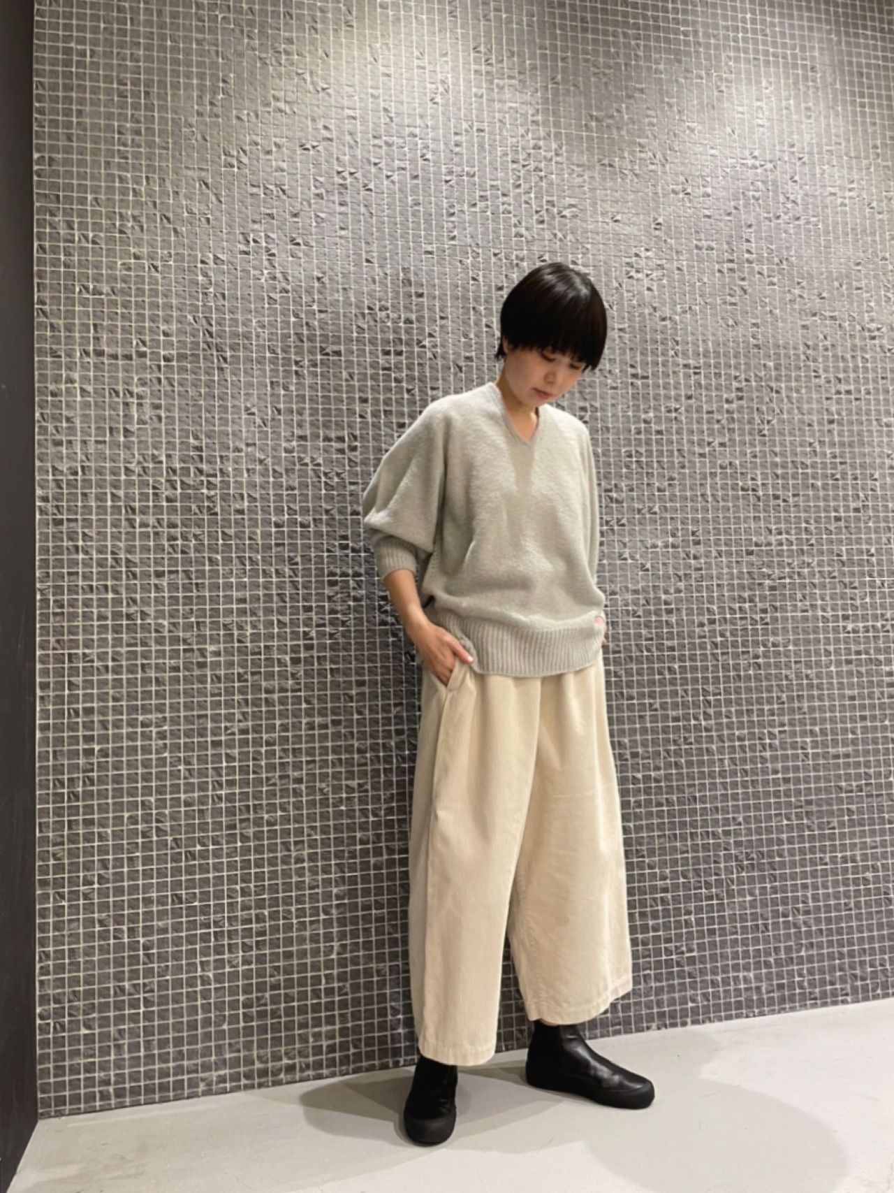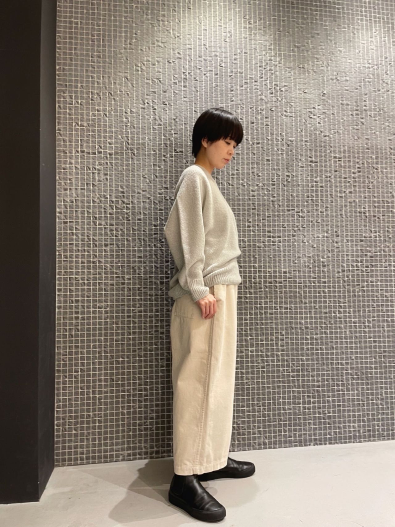 ゆったりとしたリラックスムードで着たいので、あえて36サイズをチョイスしました。