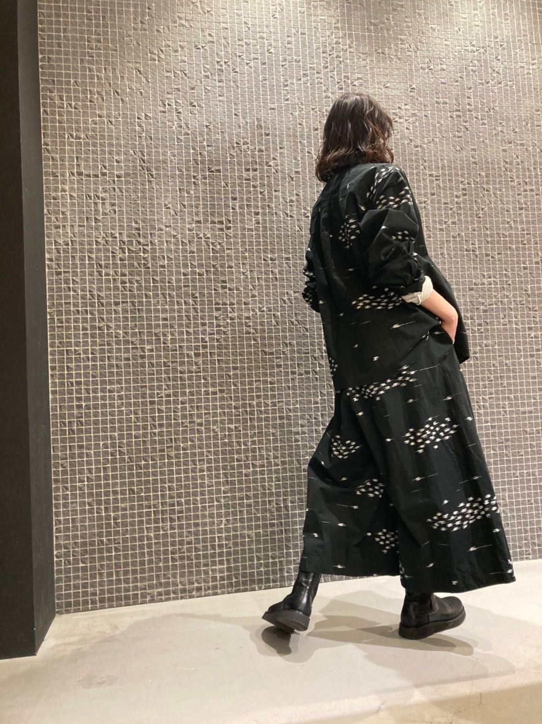 トレンドの幾何柄、ホグシ柄のプリントが施されている。