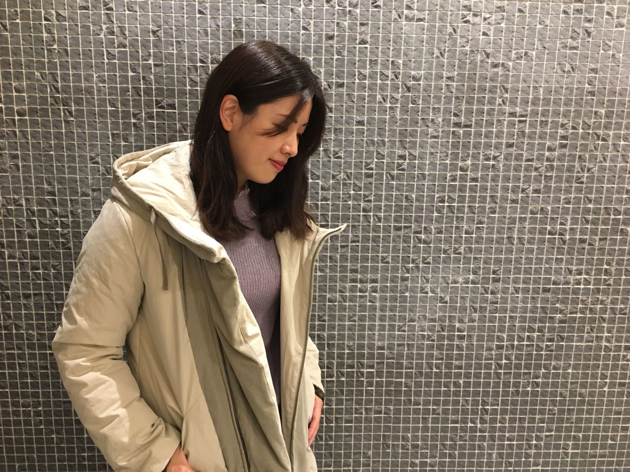 イルミネーションデートはダウンコートで寒さ対策もばっちり。