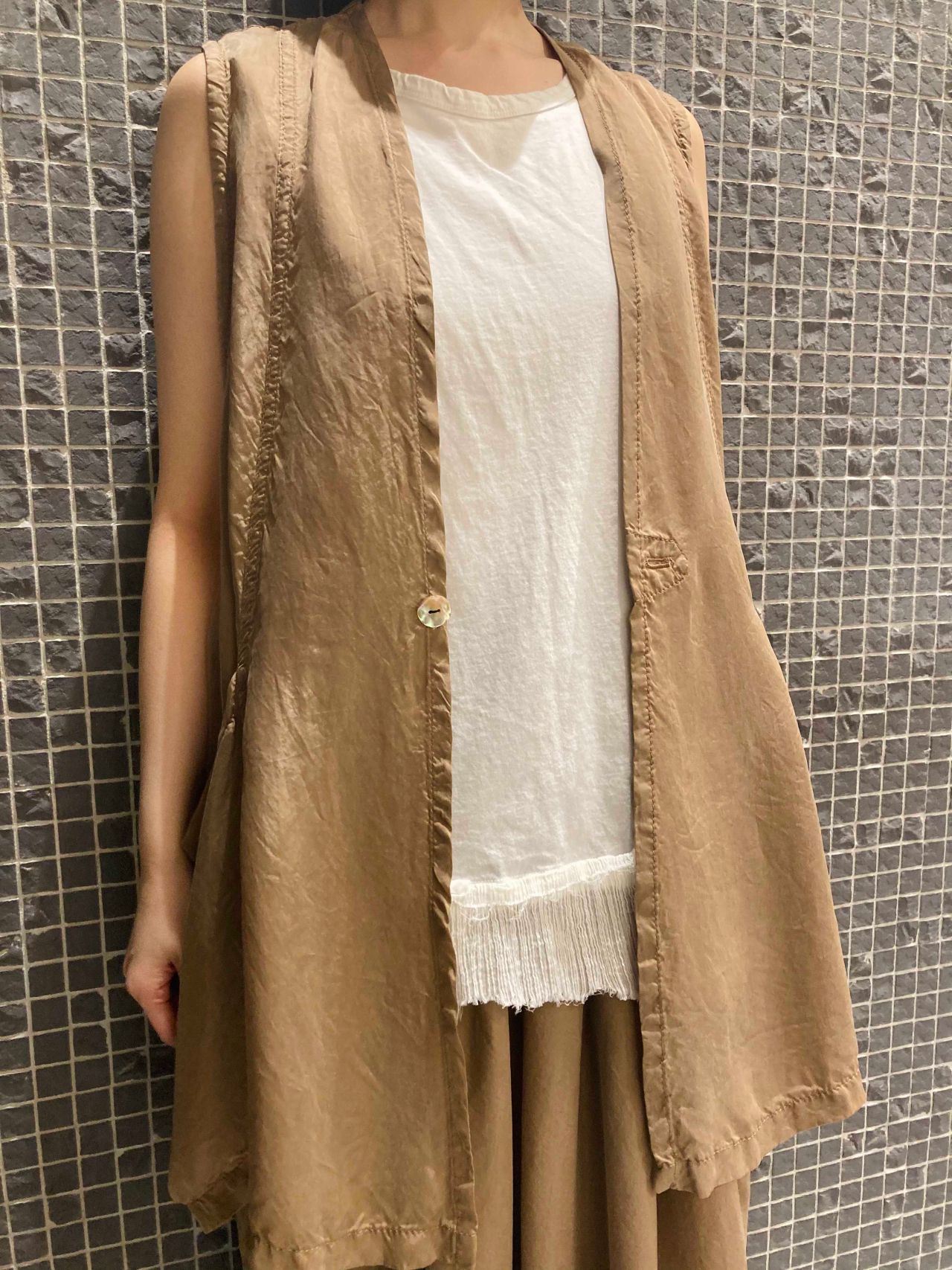 前回のブログで紹介したブラウスと同素材のスカートとジレのセットアップ