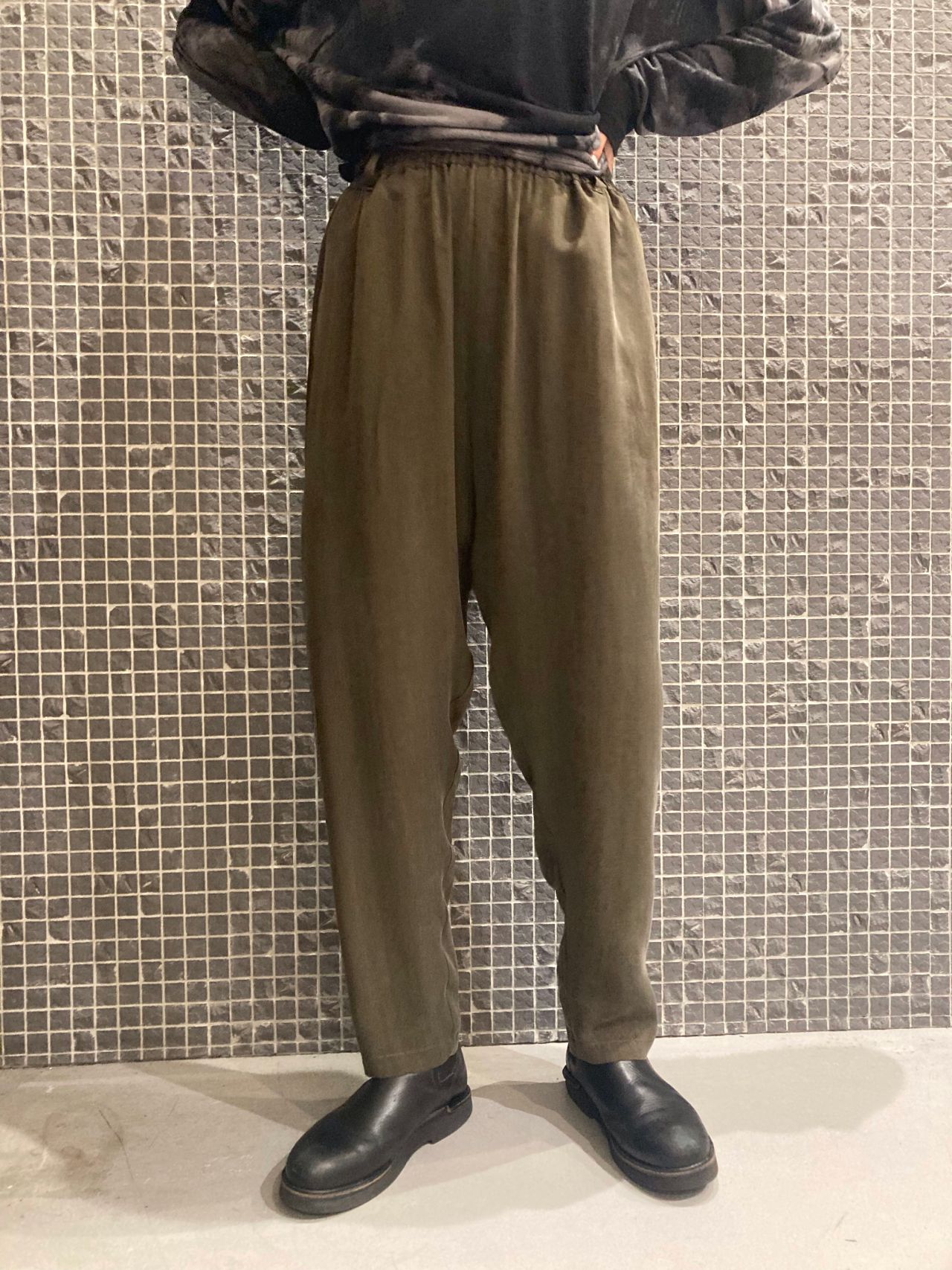 パドカレ独特のドレープ感が美しいキュプラ100%のパンツ。