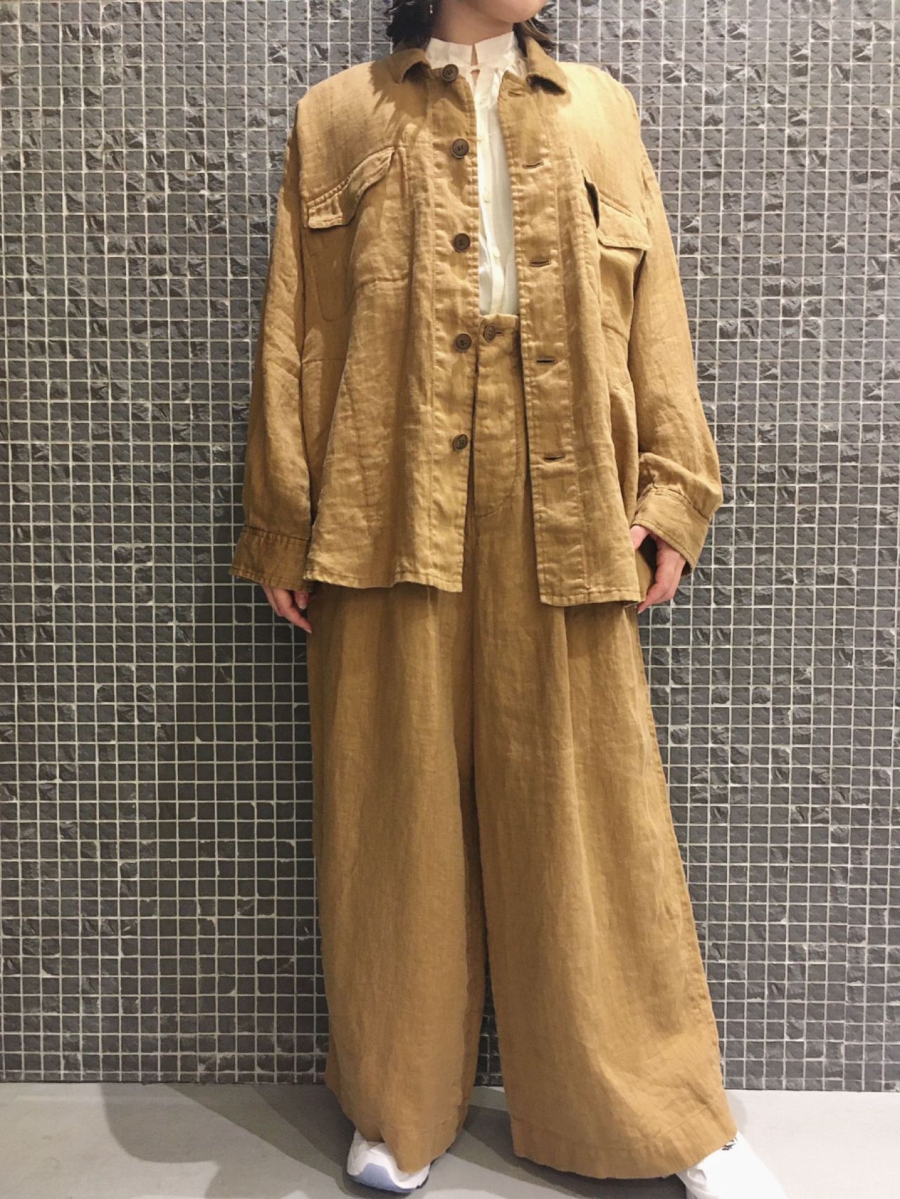 製品染めによってリネンのコシを折り、柔らかい風合いに仕上げています。