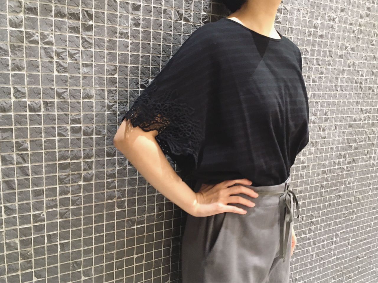 袖のケミカルレースがフェミニンな印象をプラスしてくれます。