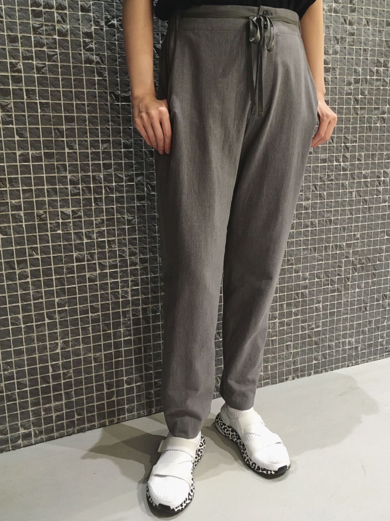 新作のTシャツにスッキリ細めのパンツを合わせたスポーティーなスタイリング。