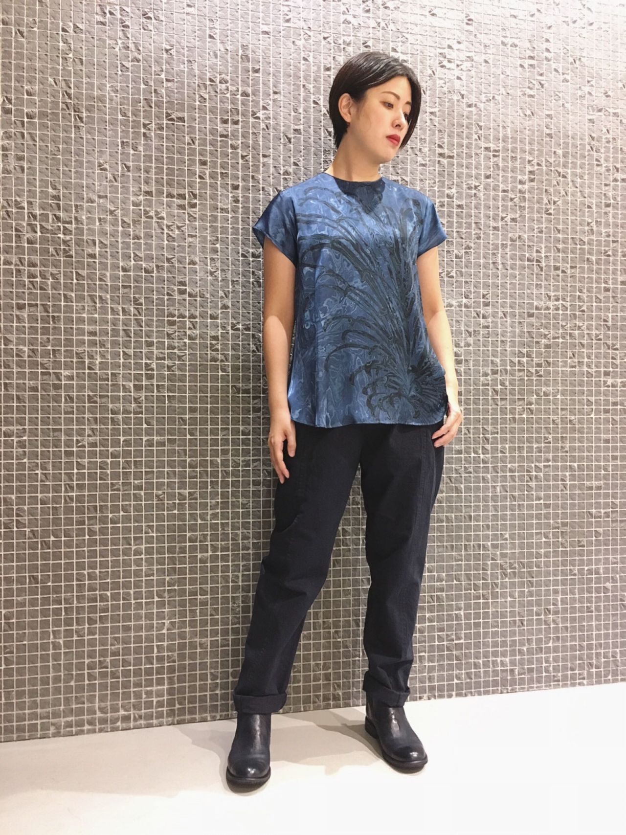 マーブルプリントブラウス