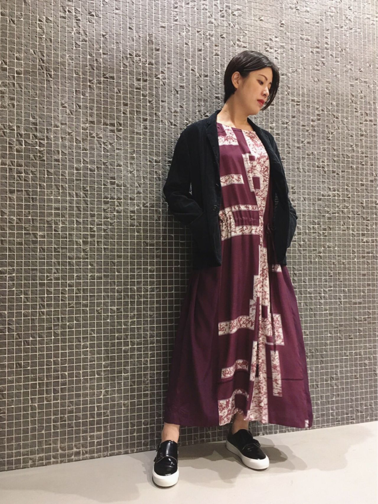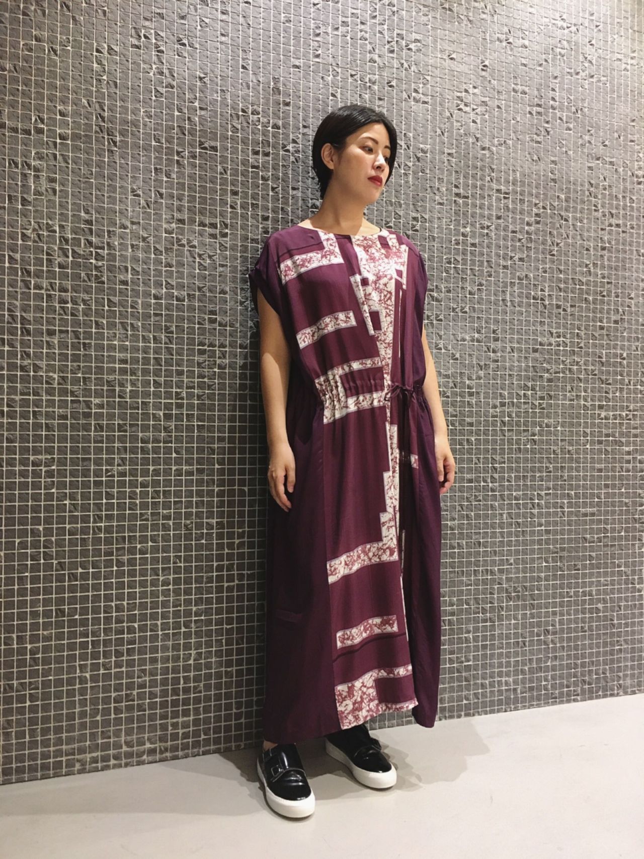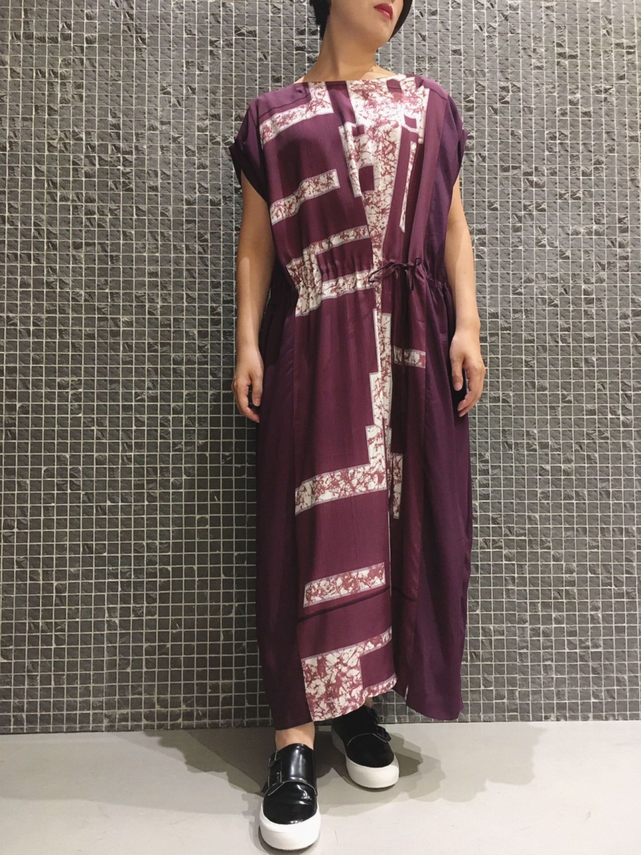 幾何学ローケツプリントワンピース