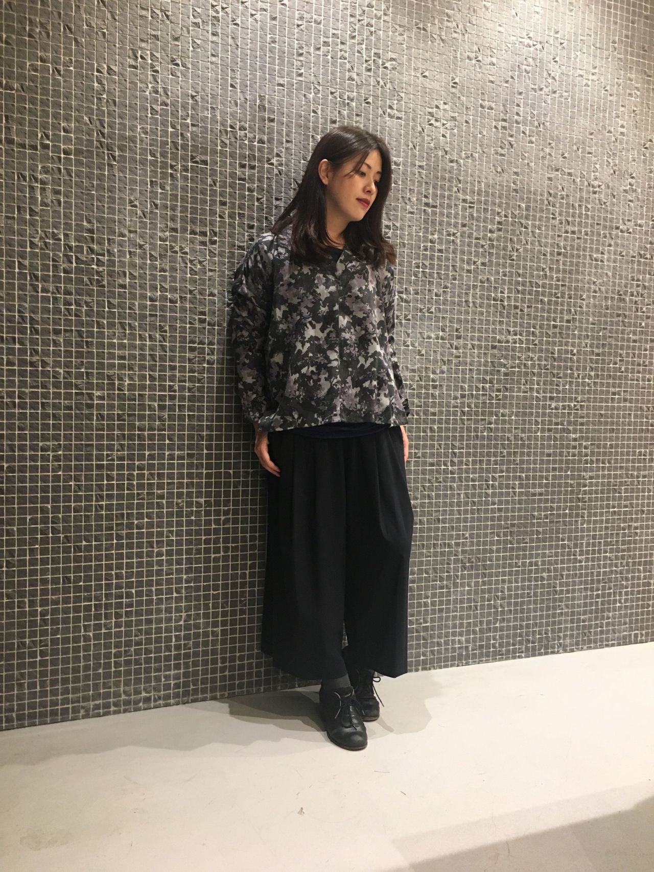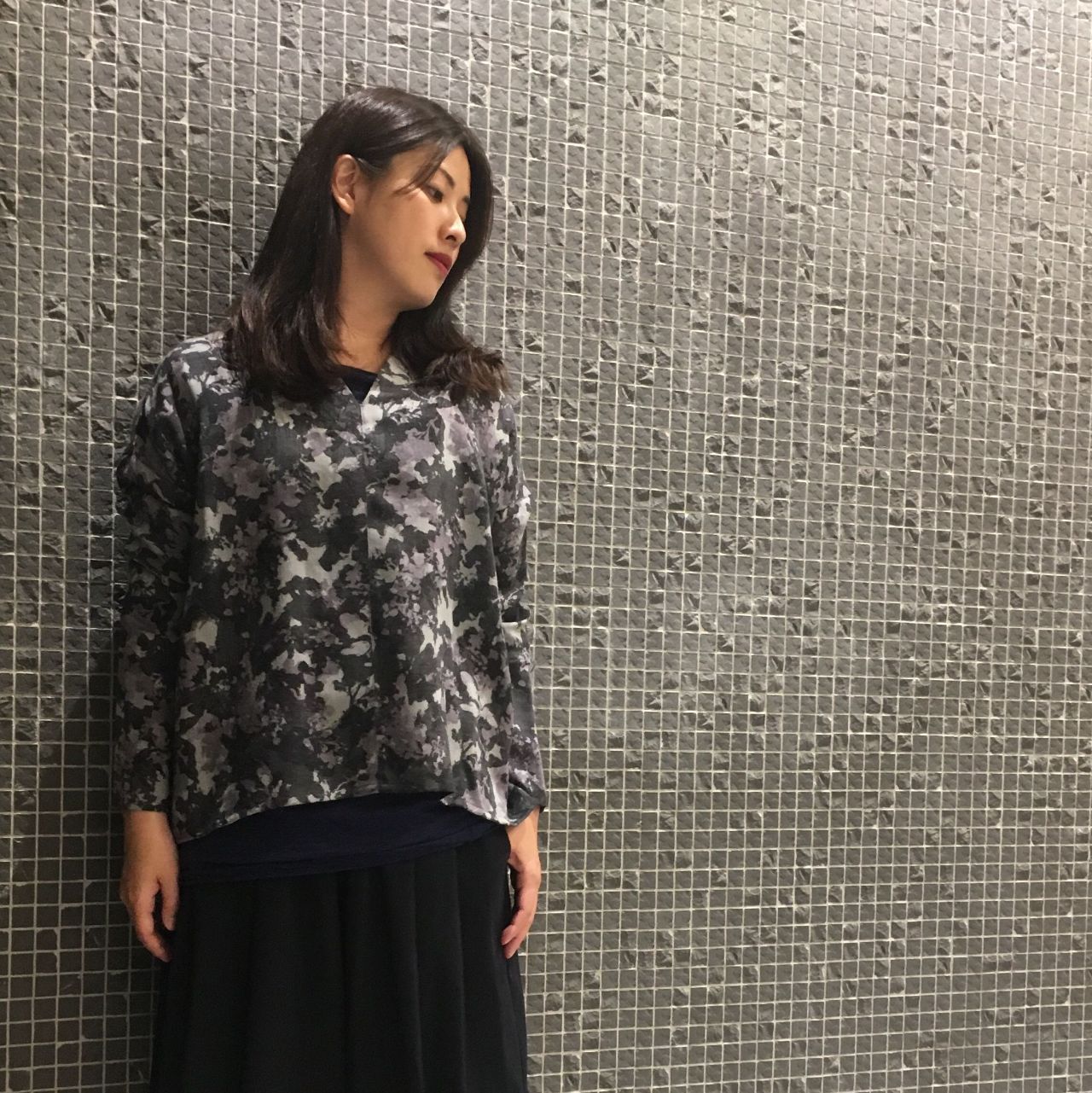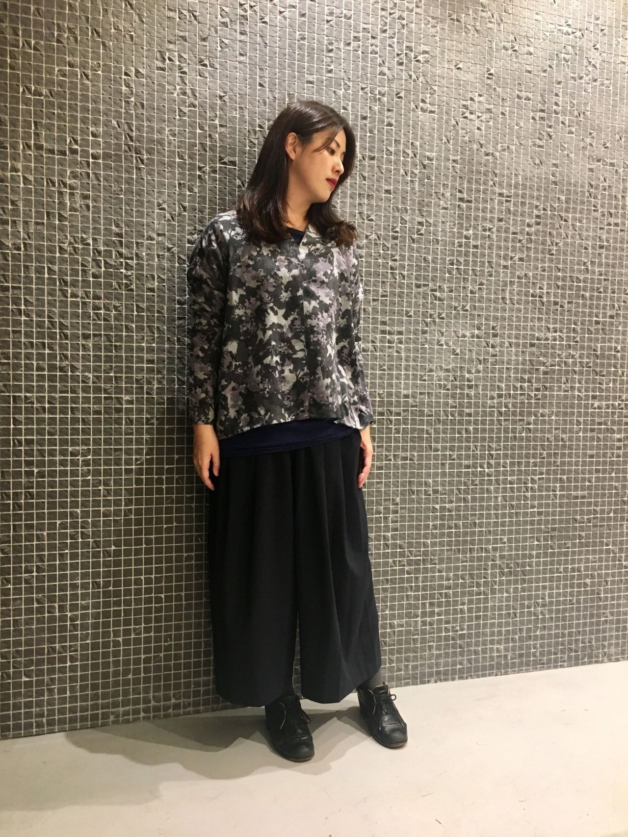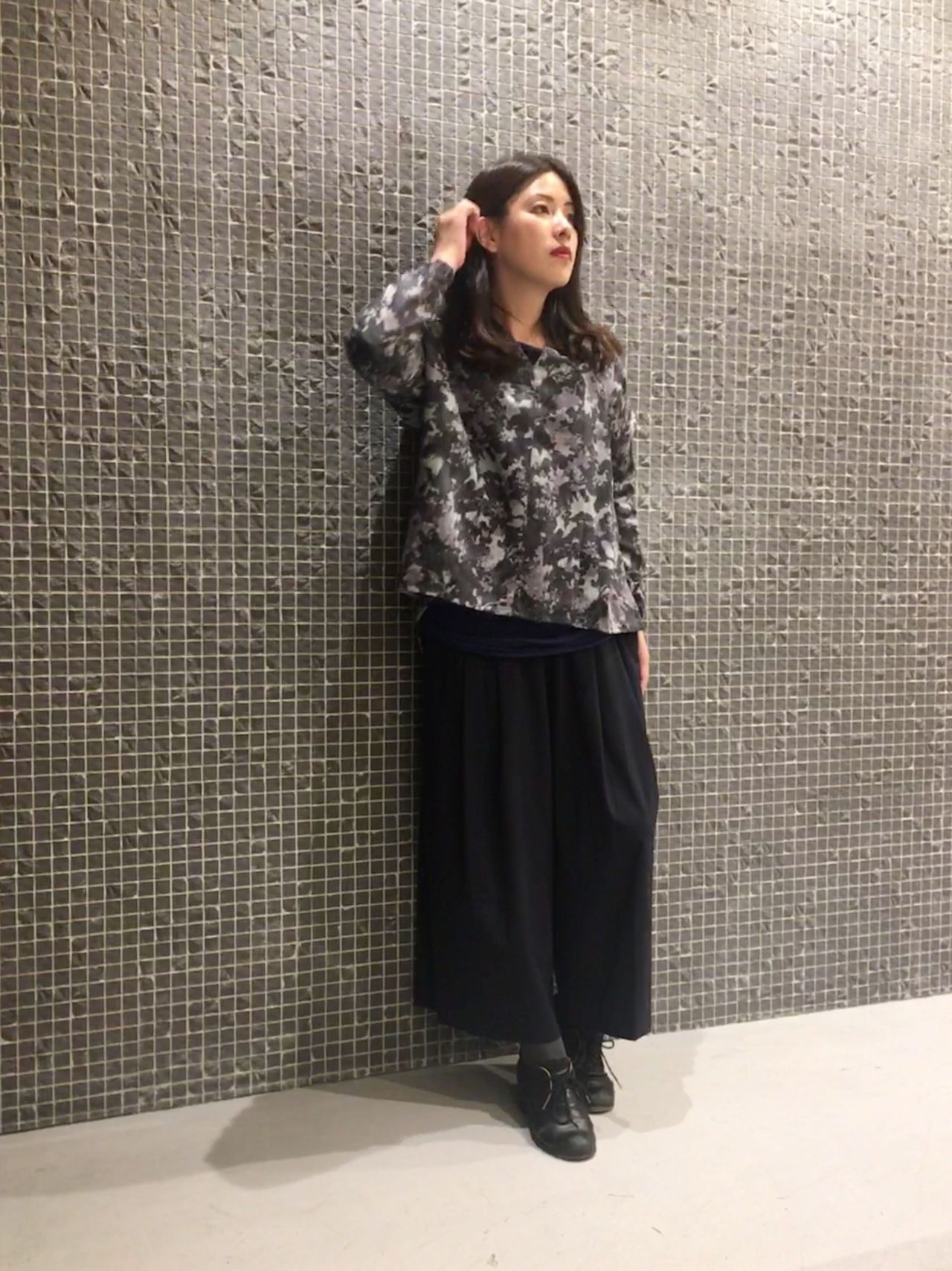 無地のパンツやスカートで合わせて頂くとスッキリとした印象になります。