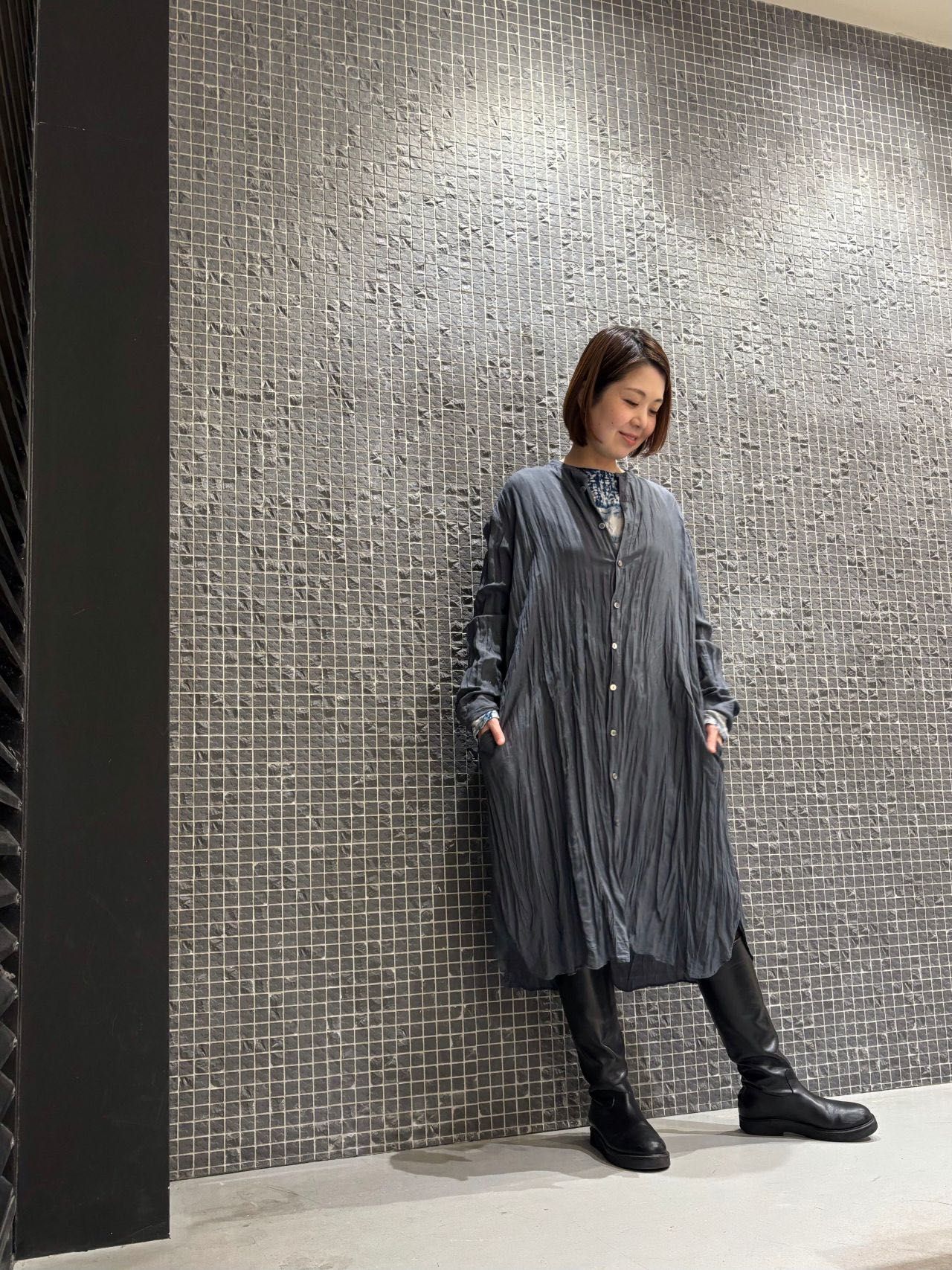 shirt dress no.4402 col.charcoal ブラックベリー染め size.36 ¥49,500