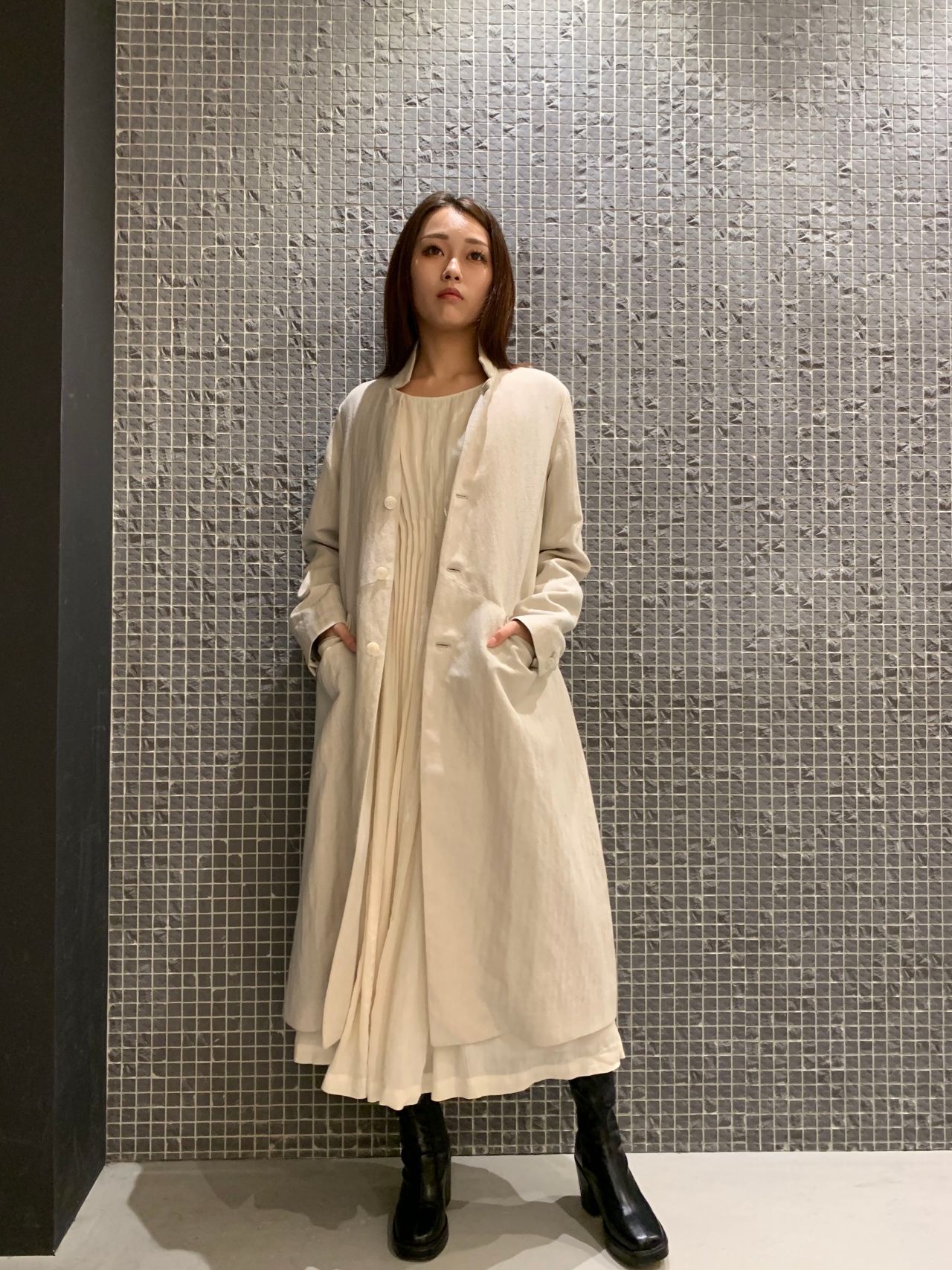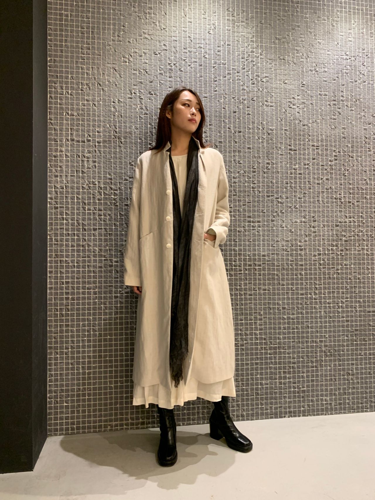 ウールリネンヘリンボンコート(10月入荷予定)