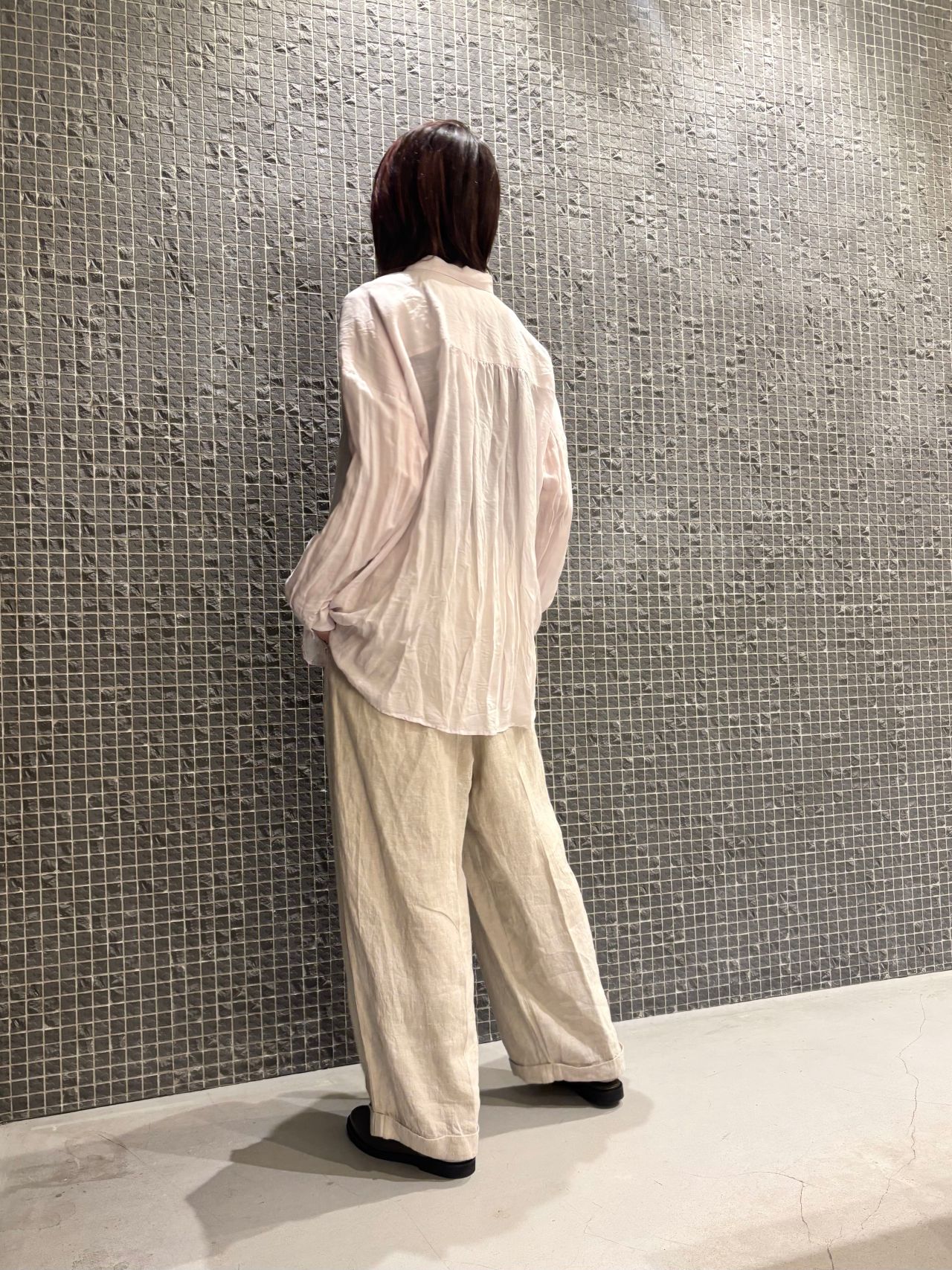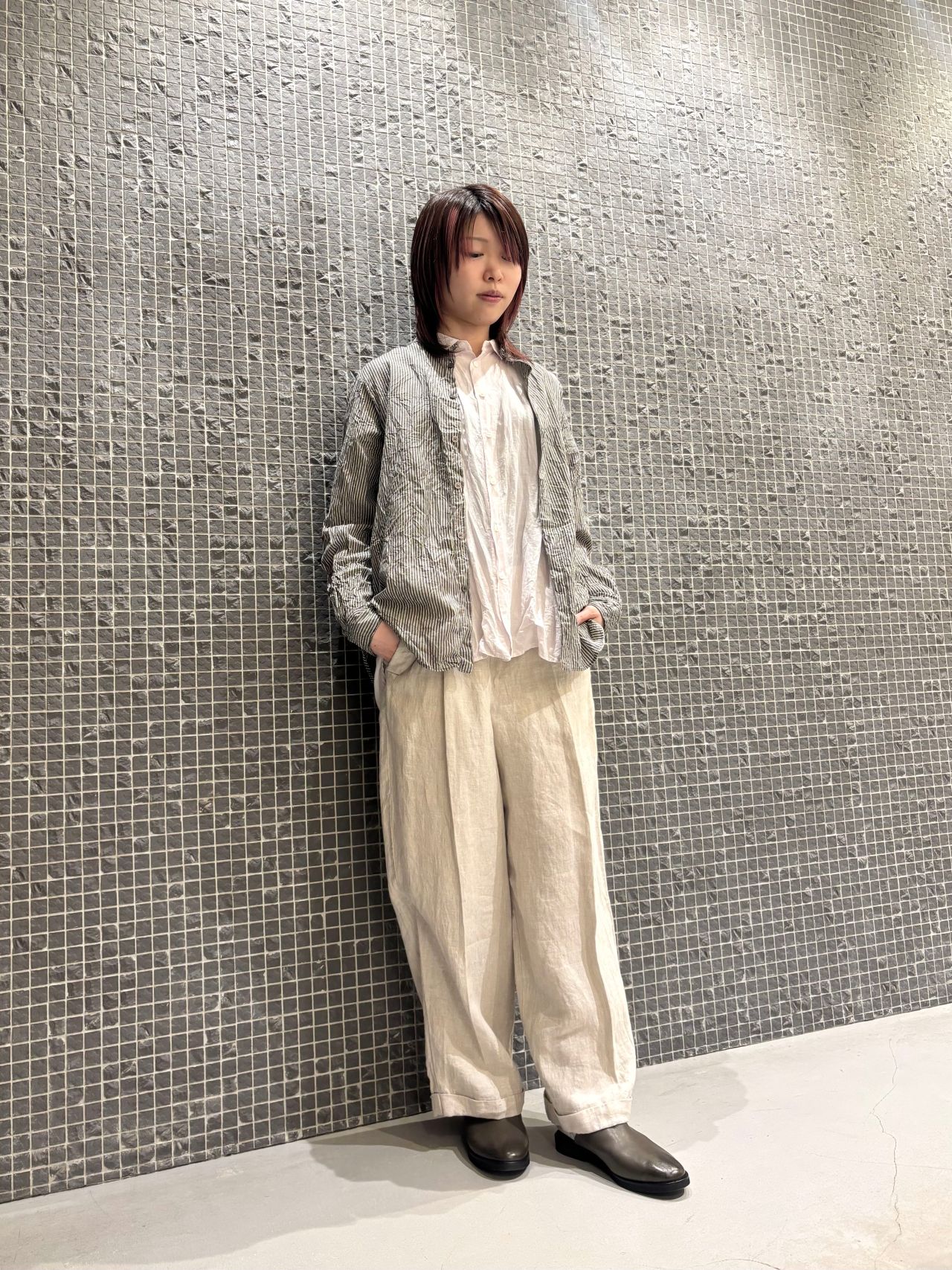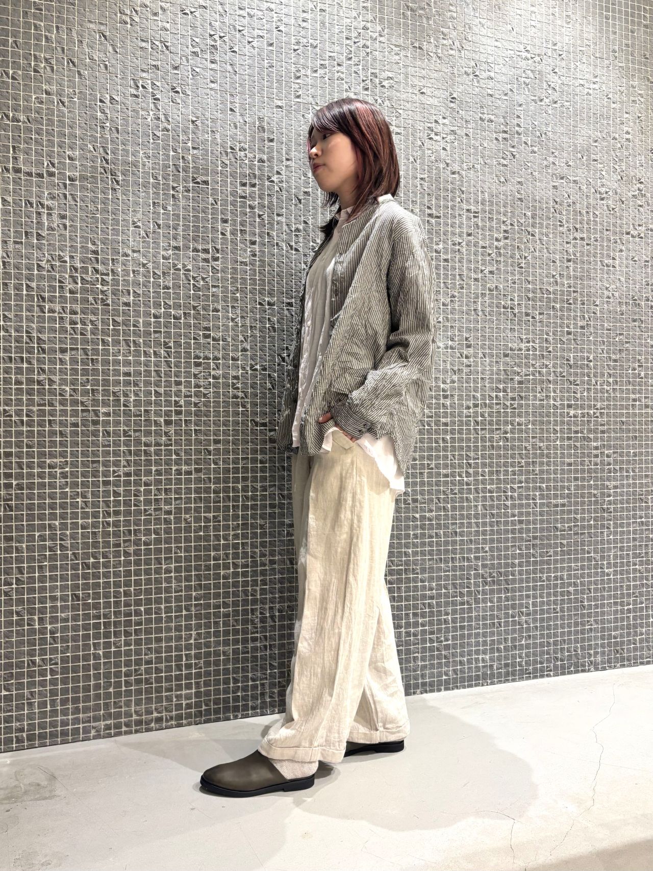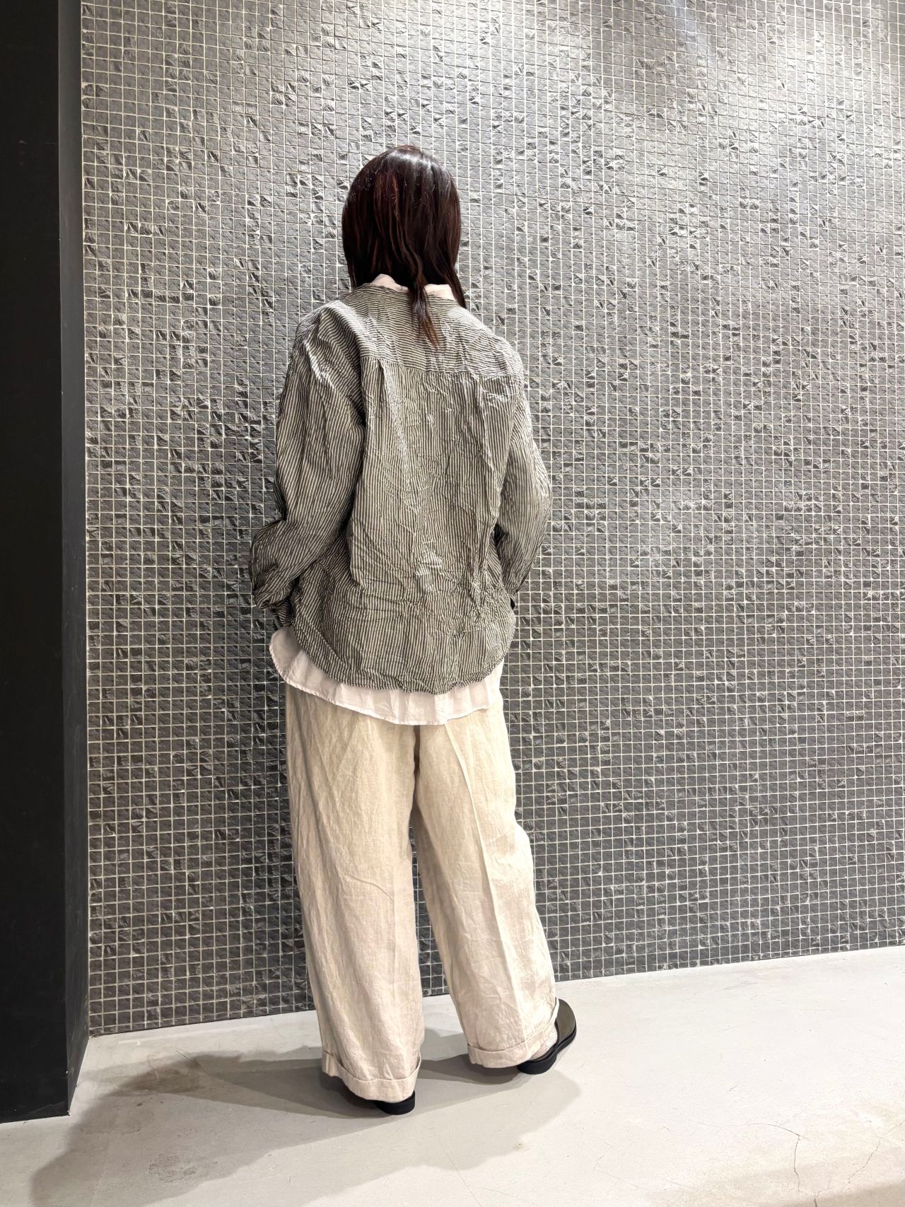 ストライプとワイドパンツでボーイッシュにまとめました。